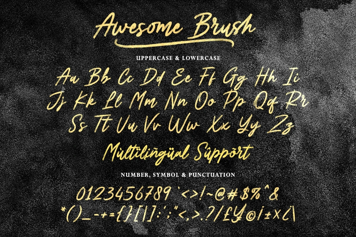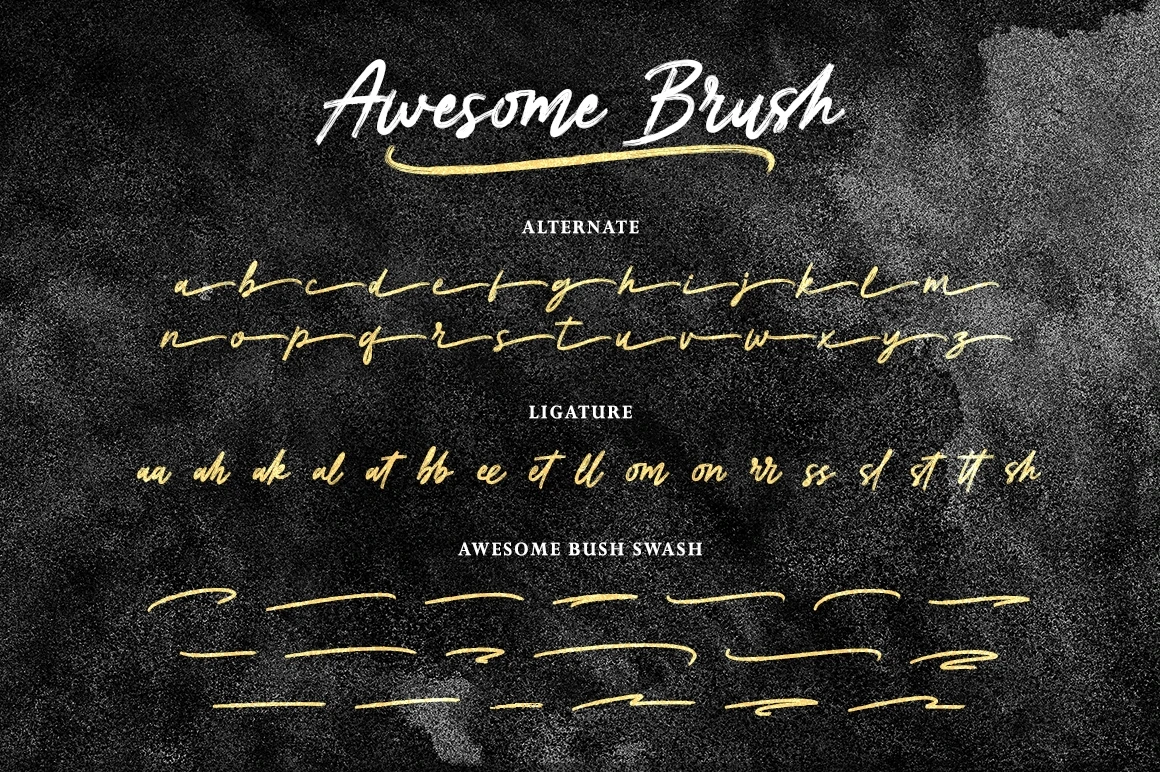 Awesome Brush is a unique textured brush font, because this brush font is made digitally. contemporary approach to design, and has underlines and also has several ligatures.