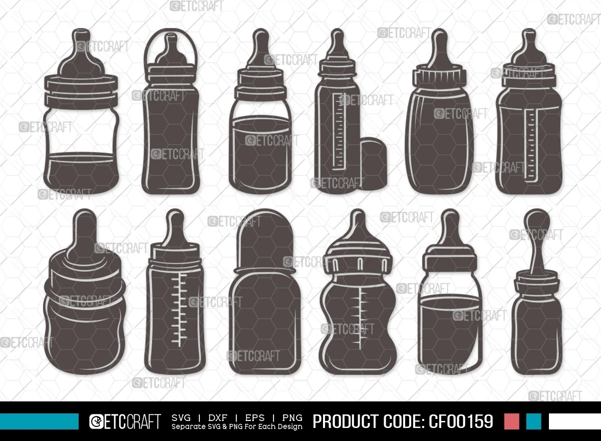 Welcome to the world of adorable beginnings with our Baby Bottle Silhouette Newborn Pacifier Milkpot SVG Cut File Bundlea delightful digital collection that embodies the sweetness of infancy. These charming silhouette clipart files are crafted to add a touch of innocence and joy to your creative designs.