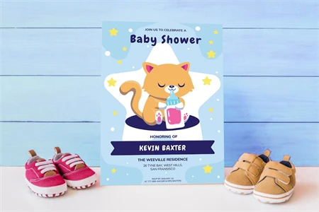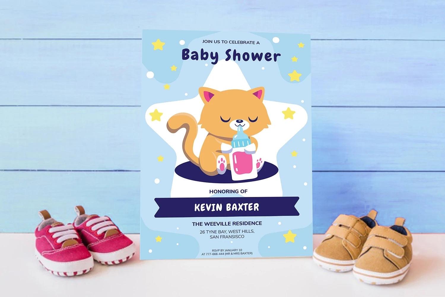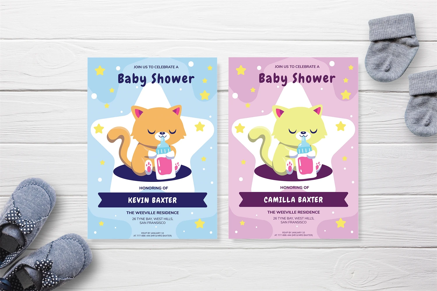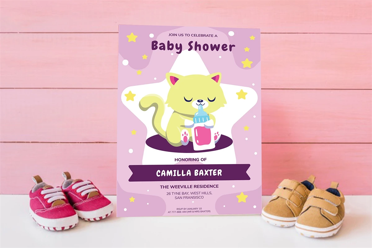 Baby Cat Drink Milk - Baby Shower Invitation, is an invitation card leaflet, poster design, etc. Simple and very elegant You can easily edit & adjust each design because each layer such as text, images and shapes are well organized and highlighted.