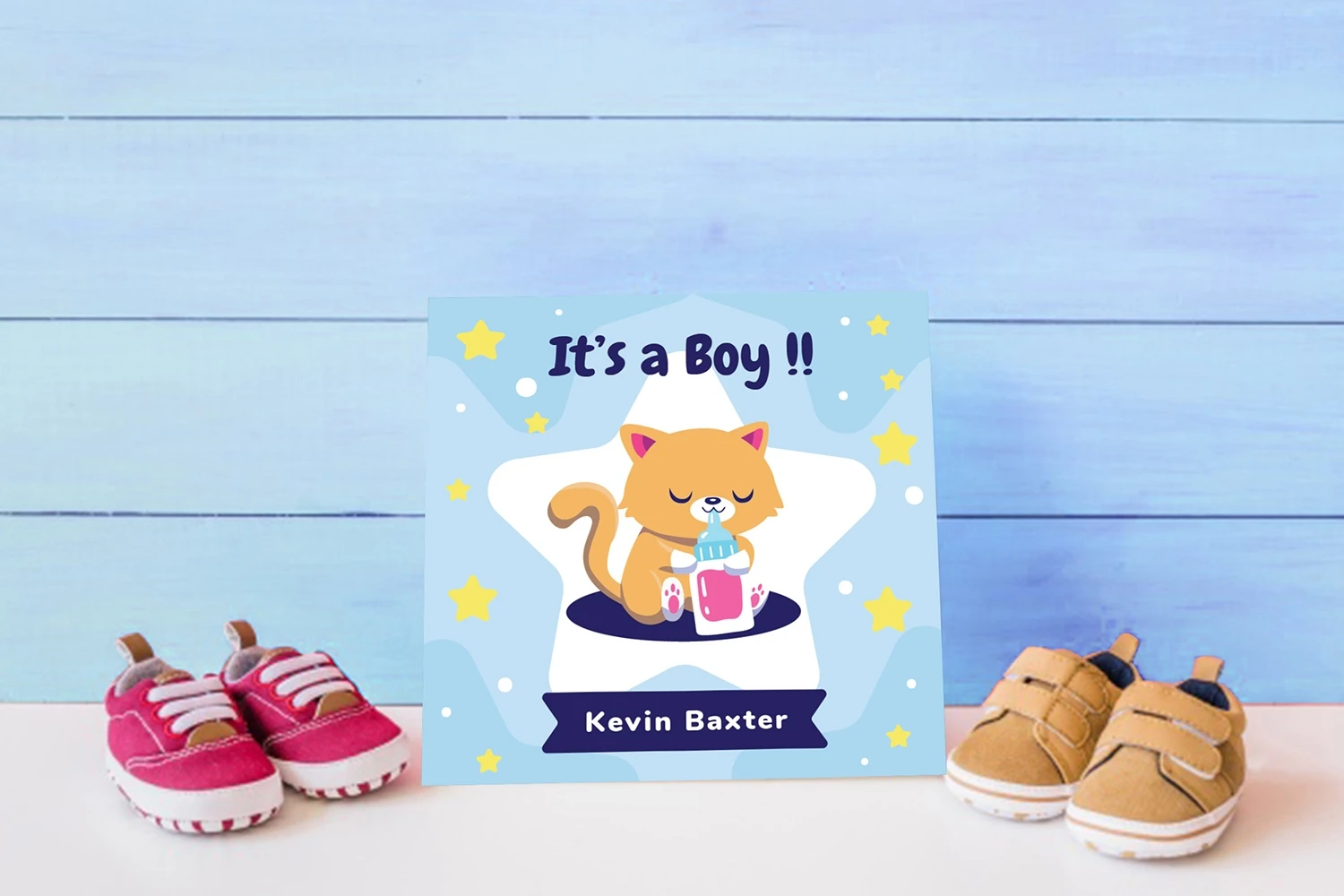 New It's a Boy (3 x 3 inch) + 0.125 inch bleeding