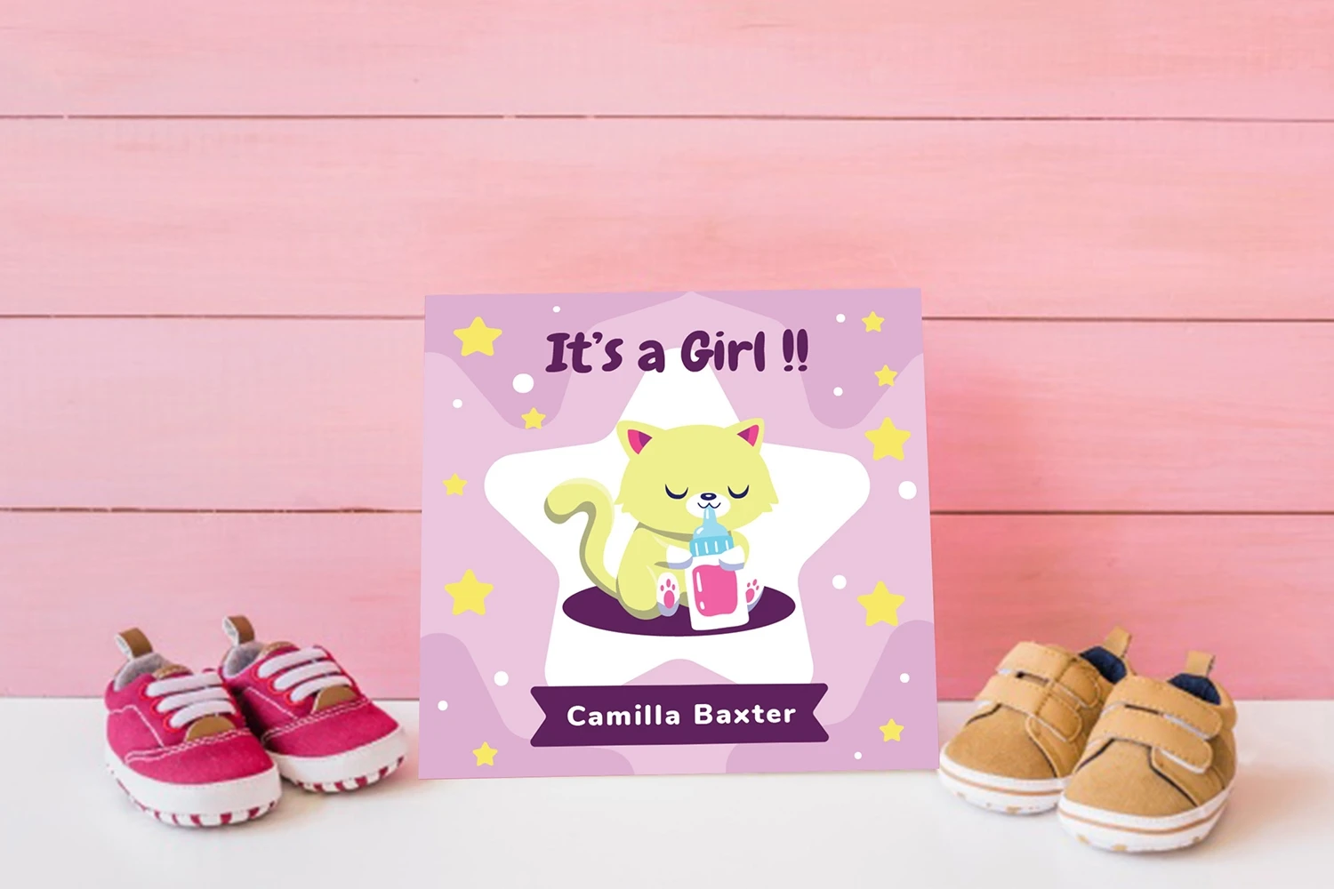 New It's a Girl (3 x 3 inch) + 0.125 inch bleeding