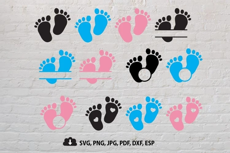 Baby Feet Bundle, Footprints, Baby Baby Feet Monogram Frames, Nursery Svg, Baby Feet Silhouette Newborn, Cut file, Cricut