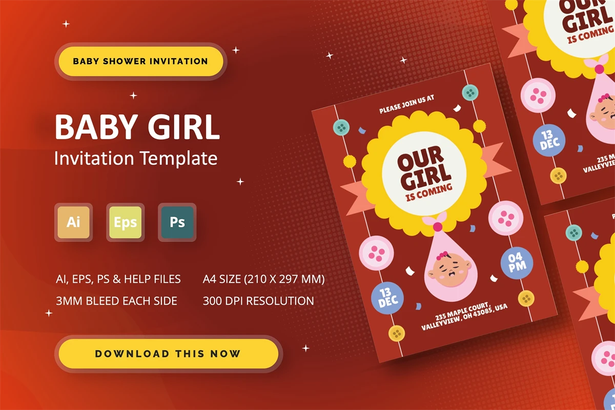 **Baby Girl - Baby Shower Invitation**