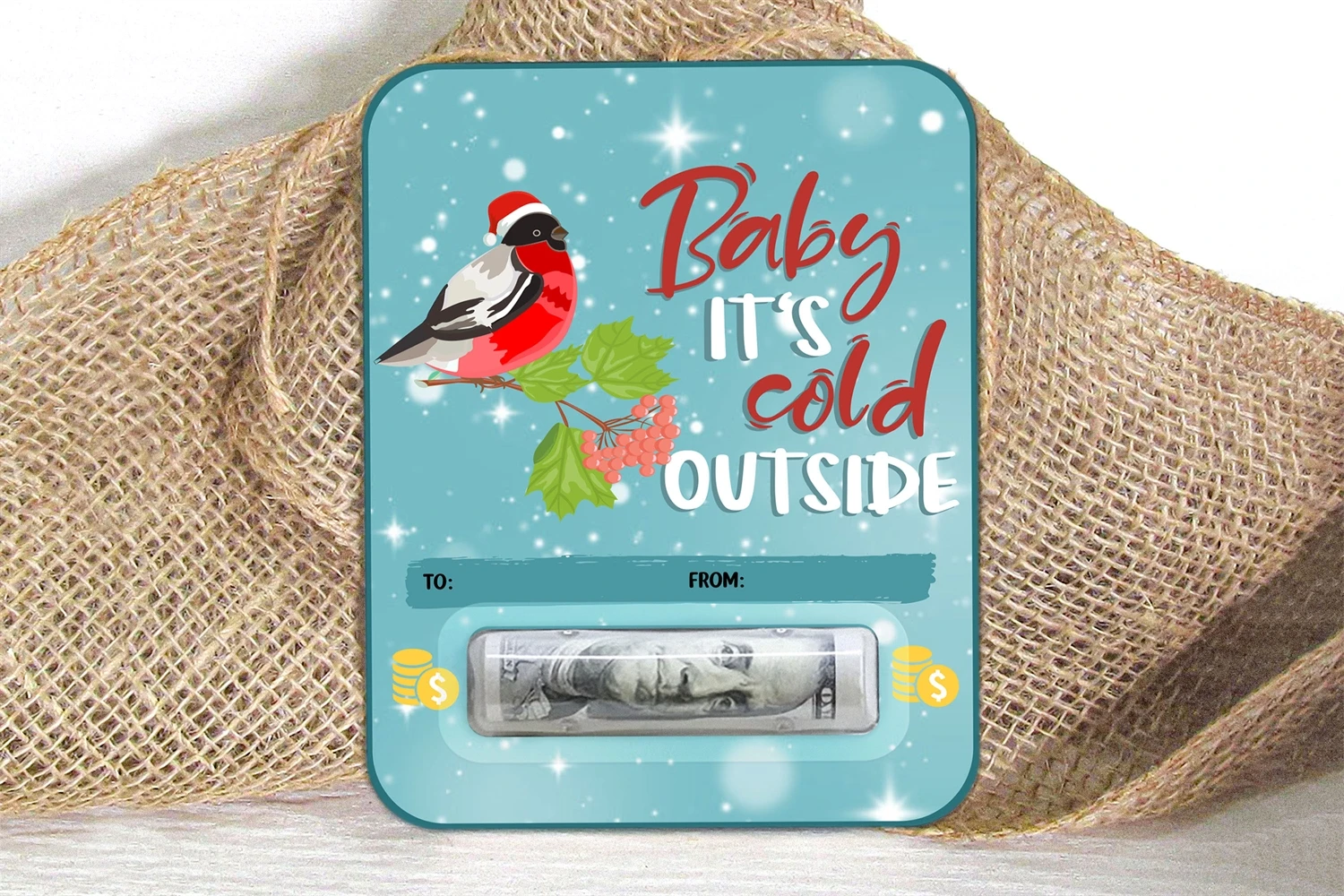 Baby Its Cold Outside Christmas Money Card PNG, Bird Design