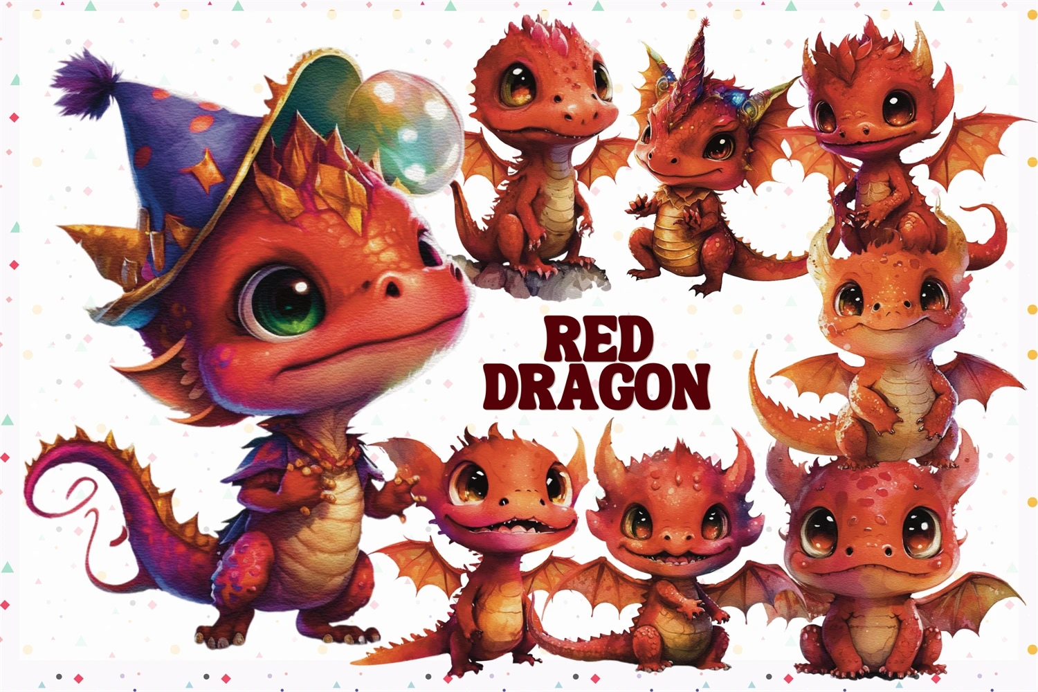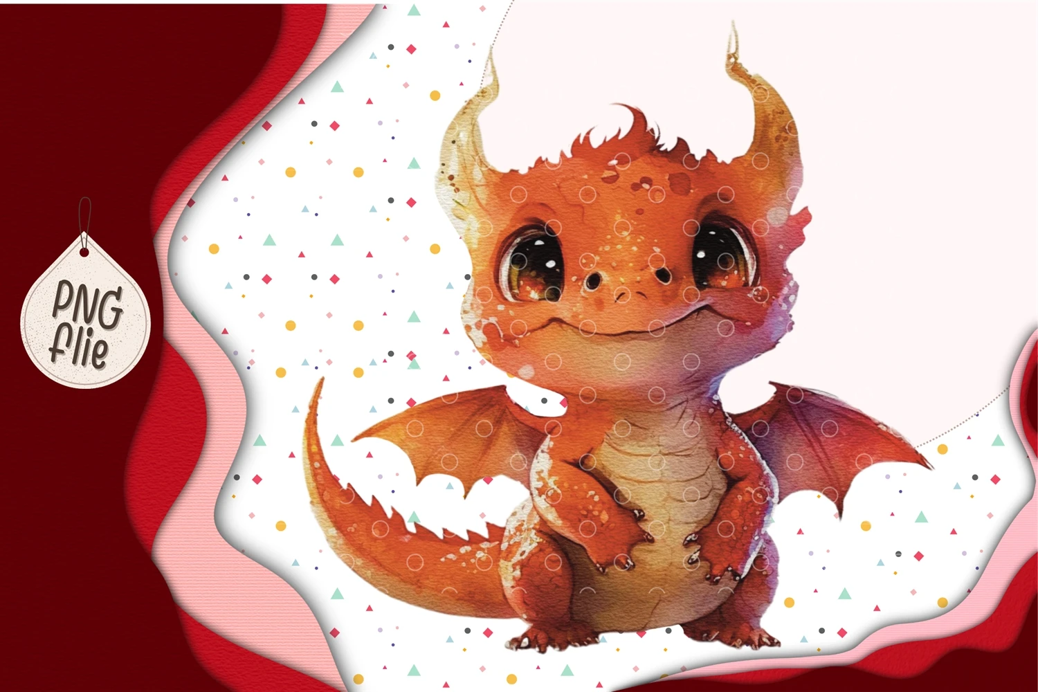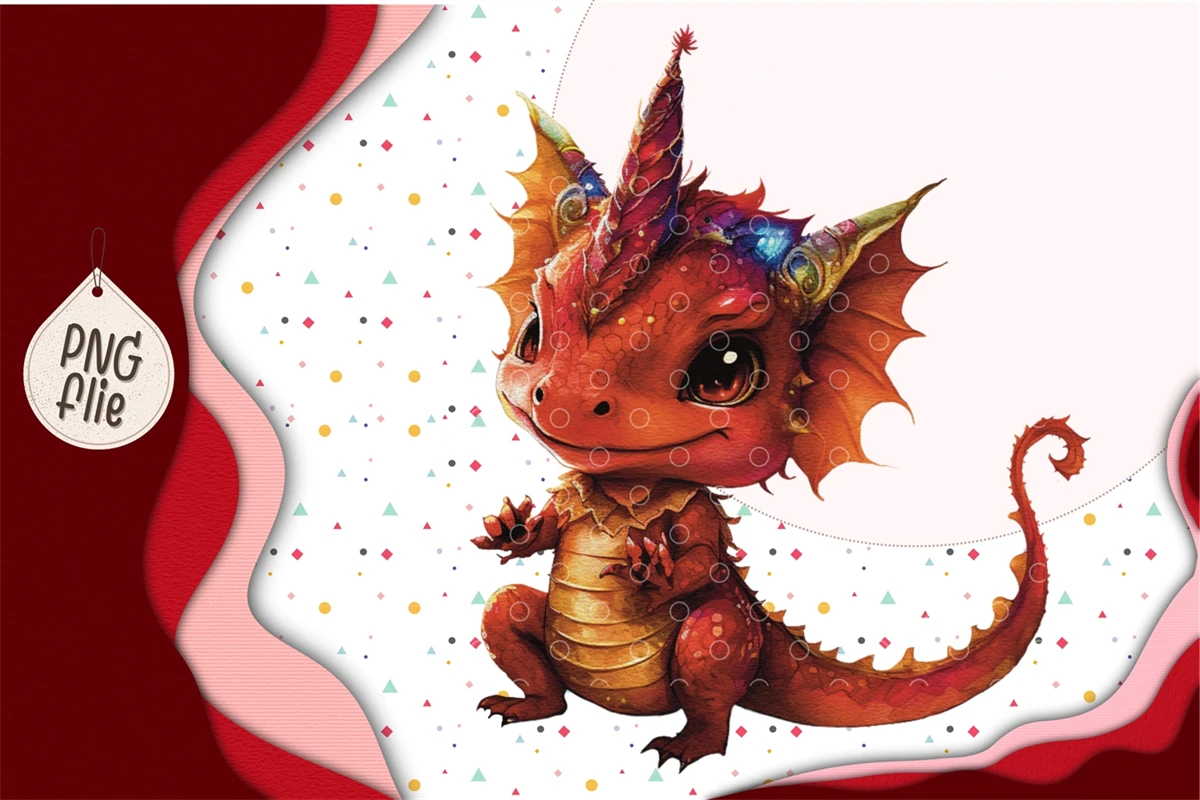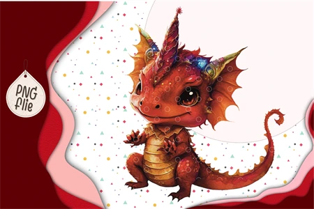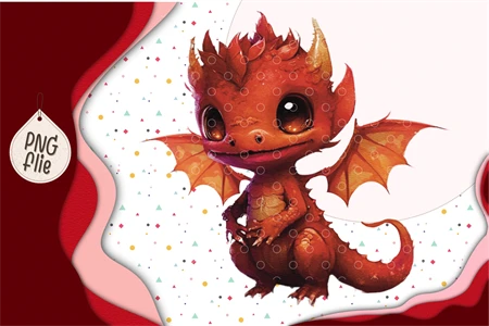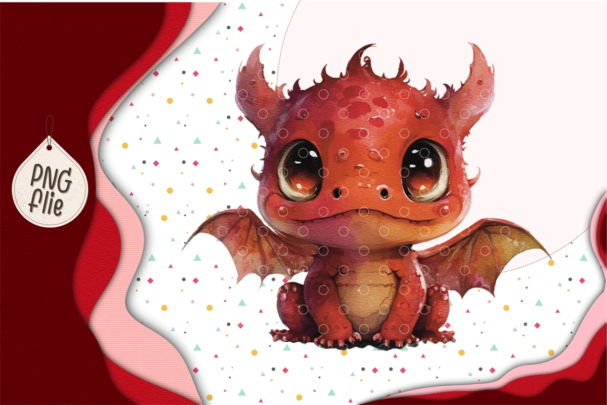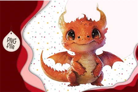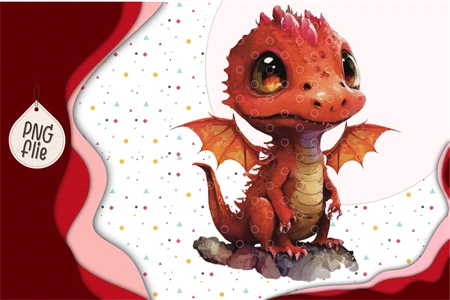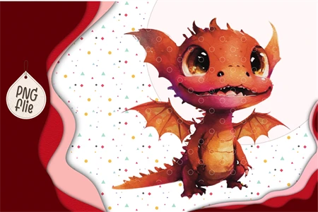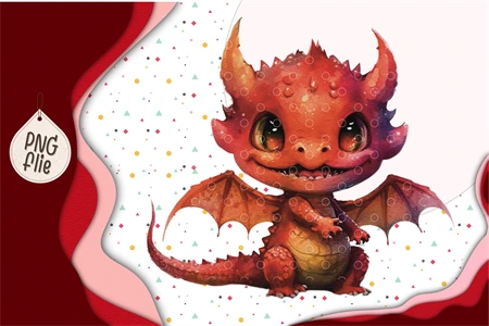 Baby red dragon In Watercolor