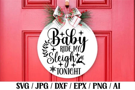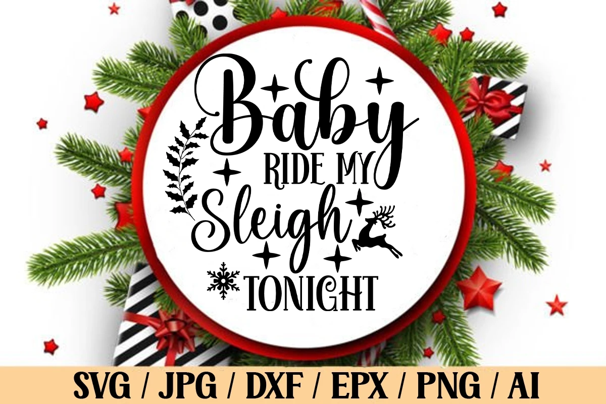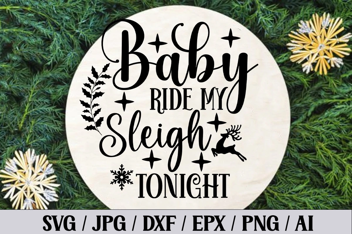 Baby Ride My Sleigh Tonight Christmas Round Sign SVG