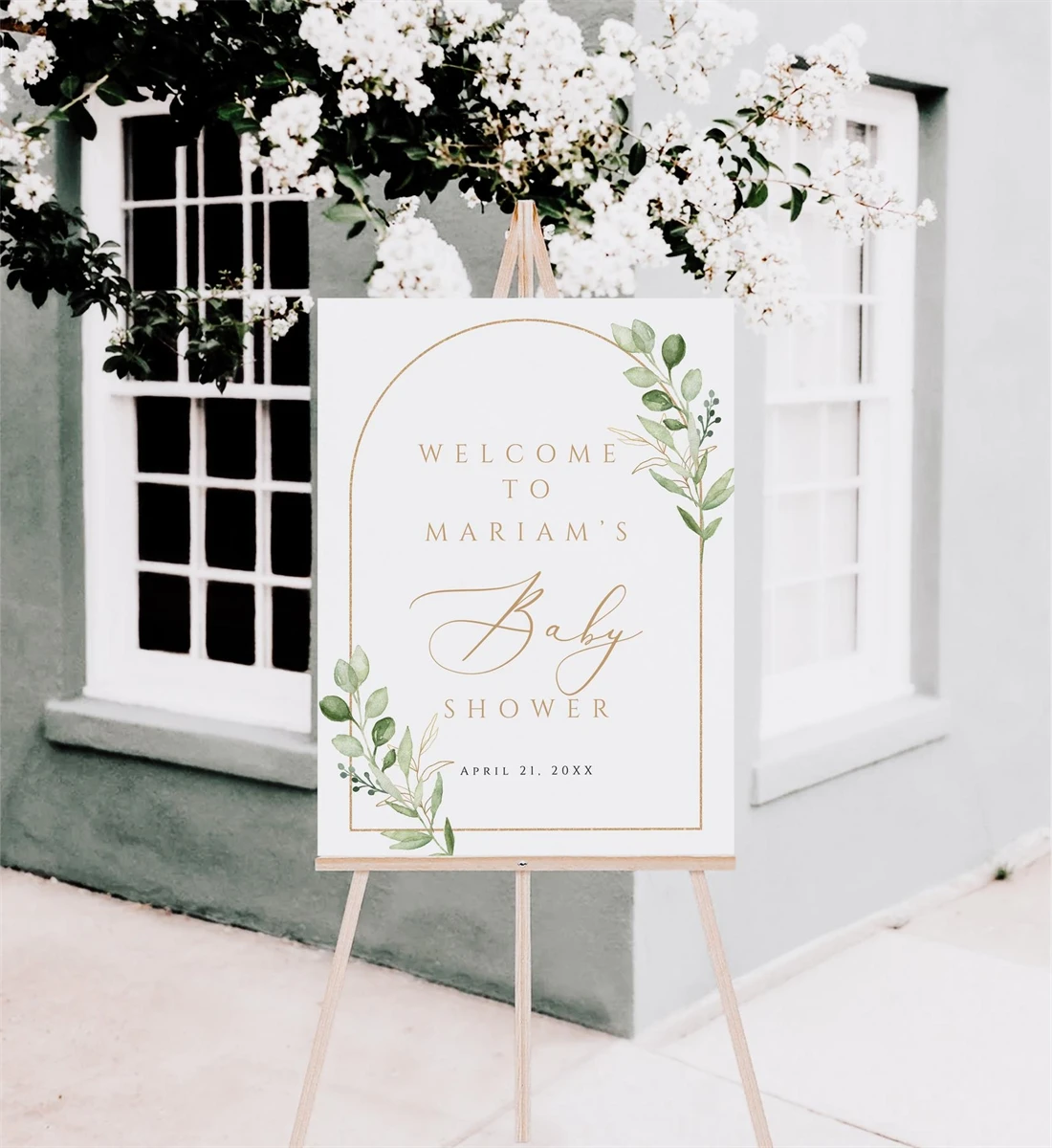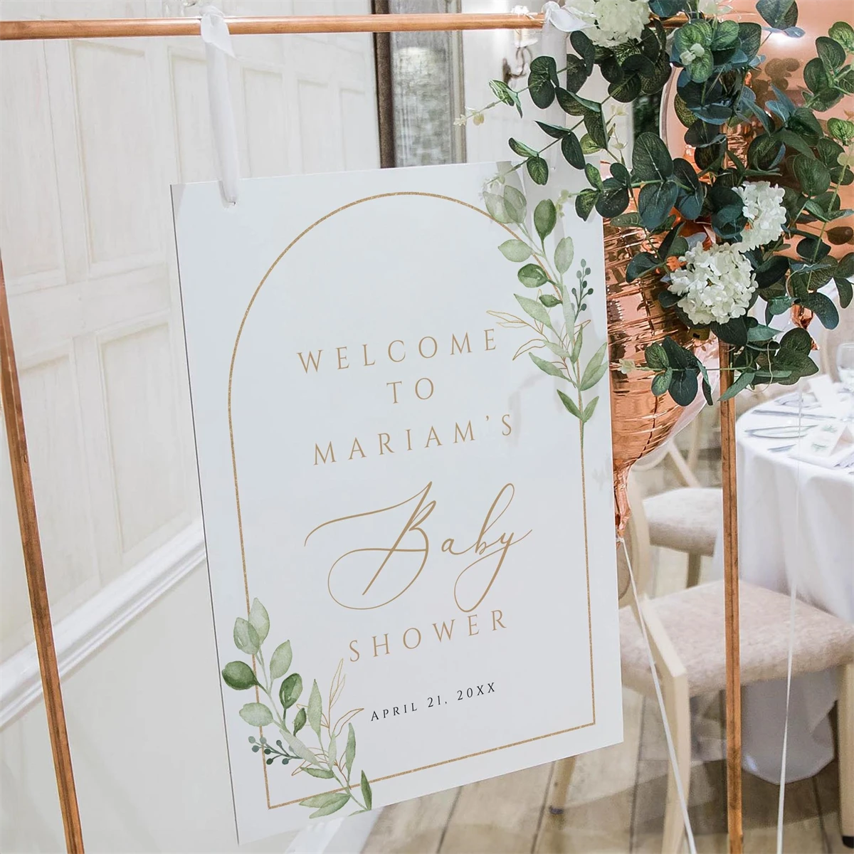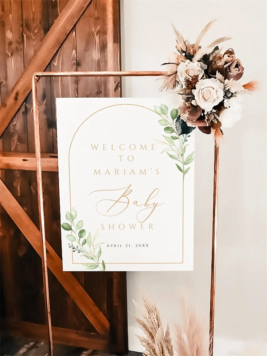 Baby Shower Welcome Sign Template, Elegant Greenery,Canva