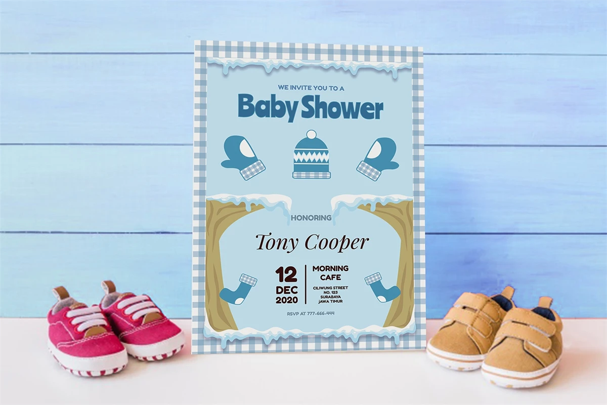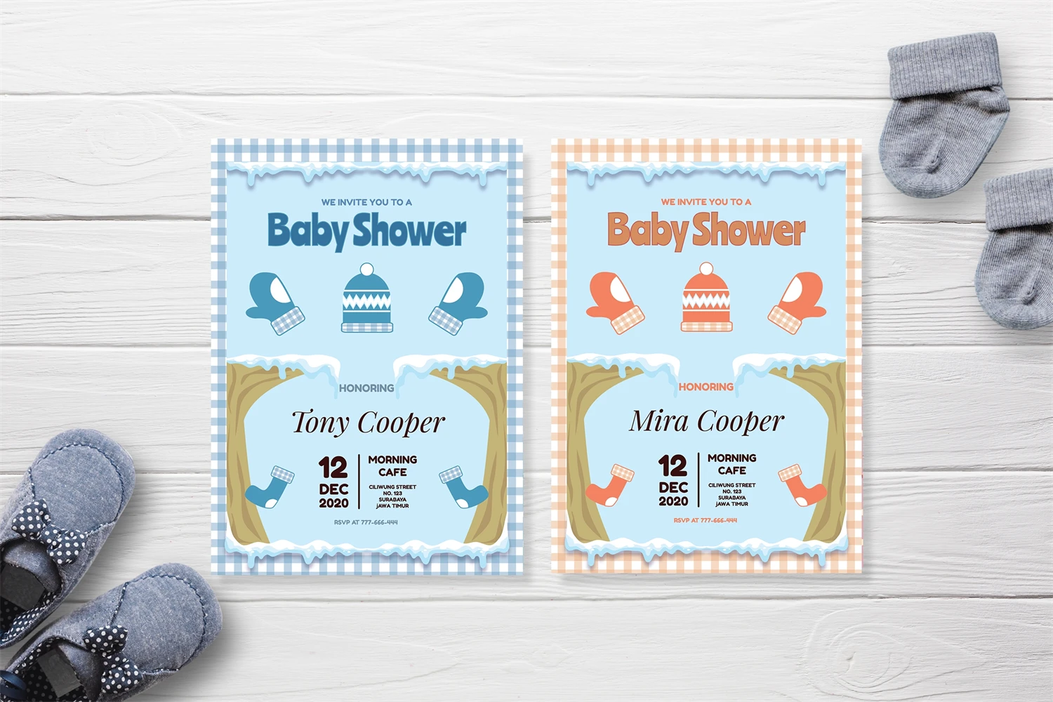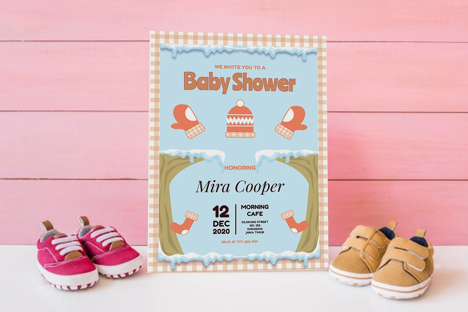 Baby Winter Theme - Baby Shower Invitation, is an invitation card leaflet, poster design, etc. Simple and very elegant You can easily edit & adjust each design because each layer such as text, images and shapes are well organized and highlighted.
