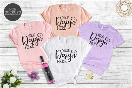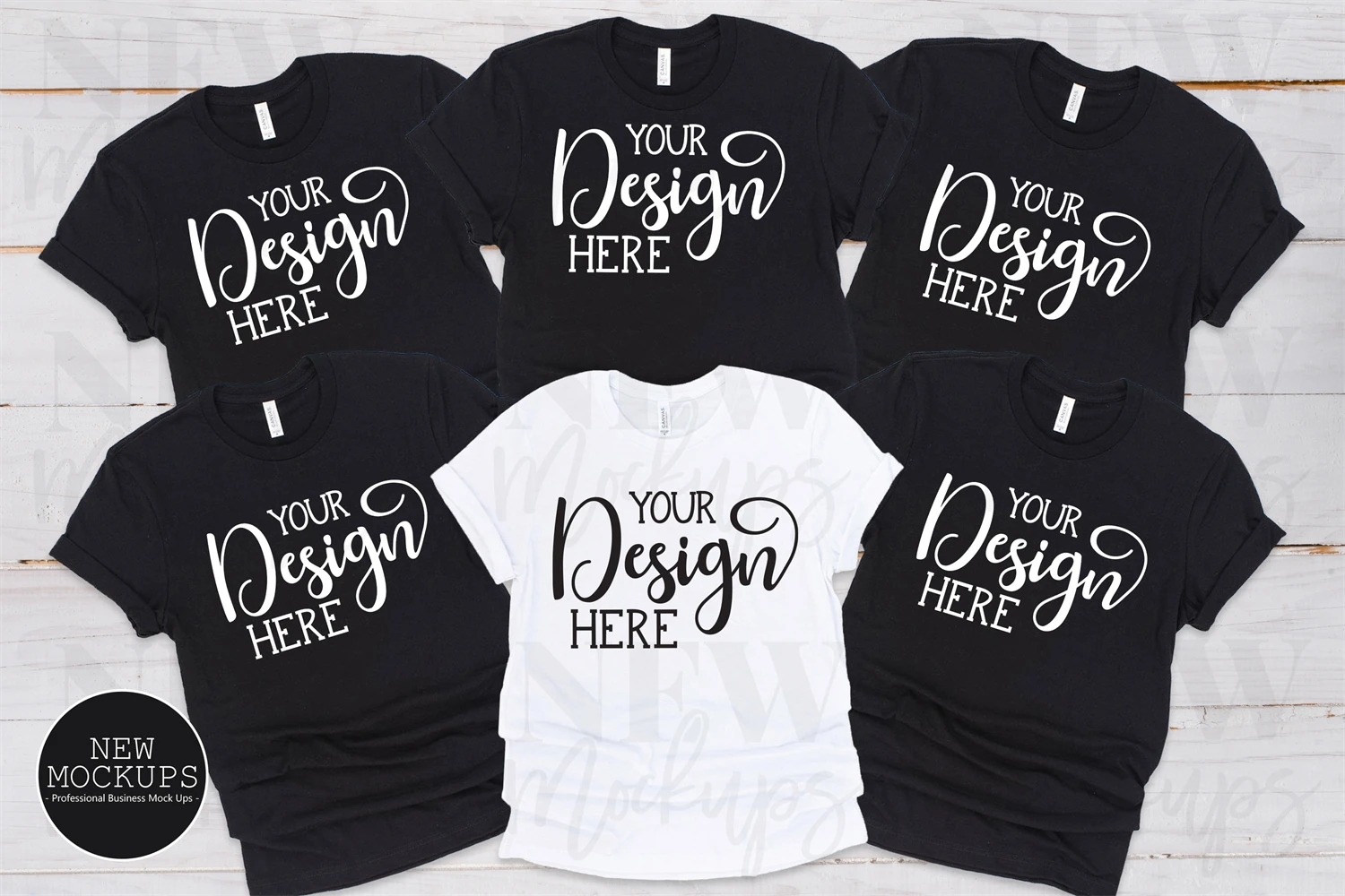 Bella canvas 3001 white and black wedding squad t-shirt mockup with wood background!