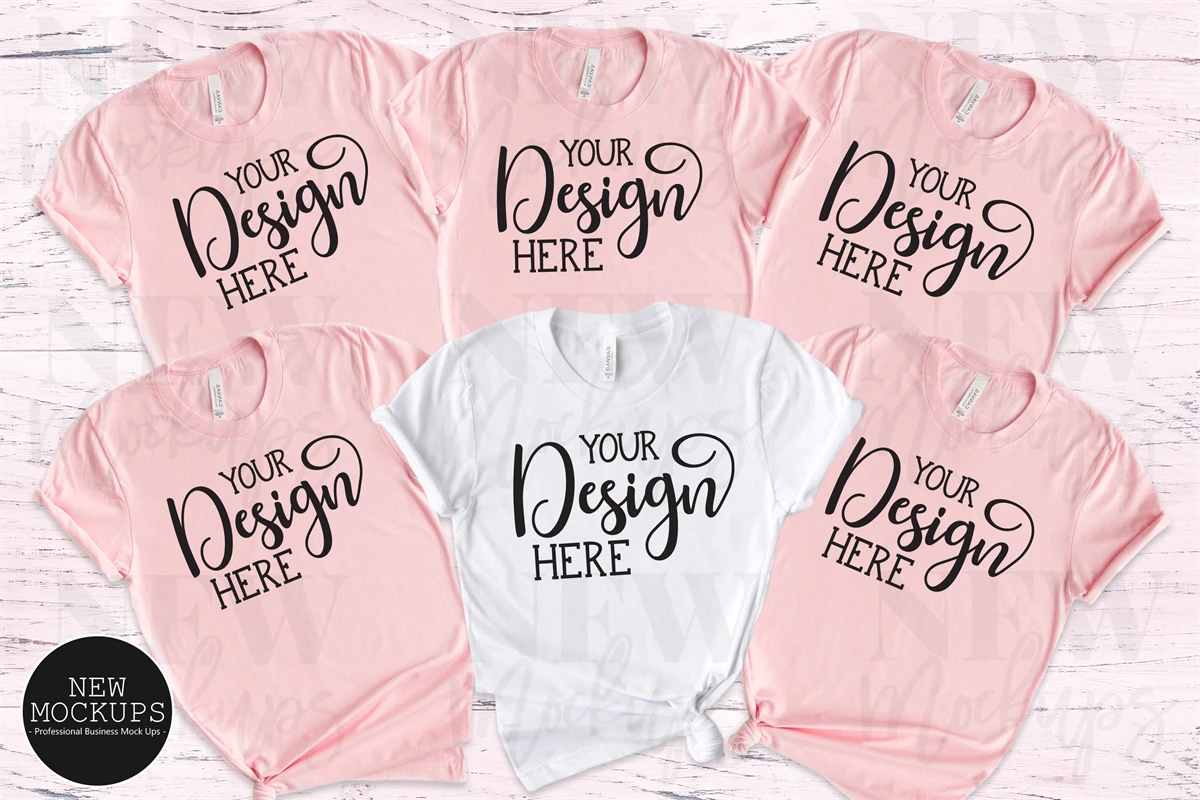 Bella Canvas 3001 Pink and White Bride Squad T-Shirt Mockup