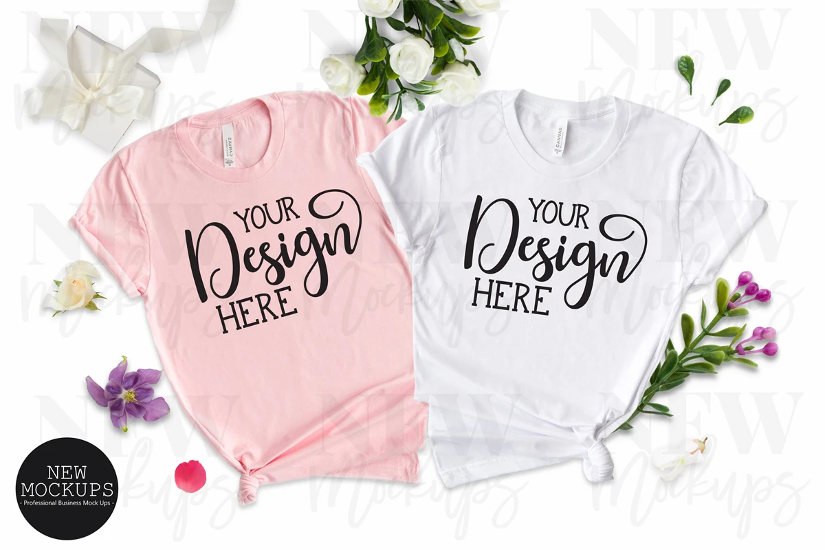 Bella Canvas 3001 Pink and White Bride Couples T-Shirt Mockup