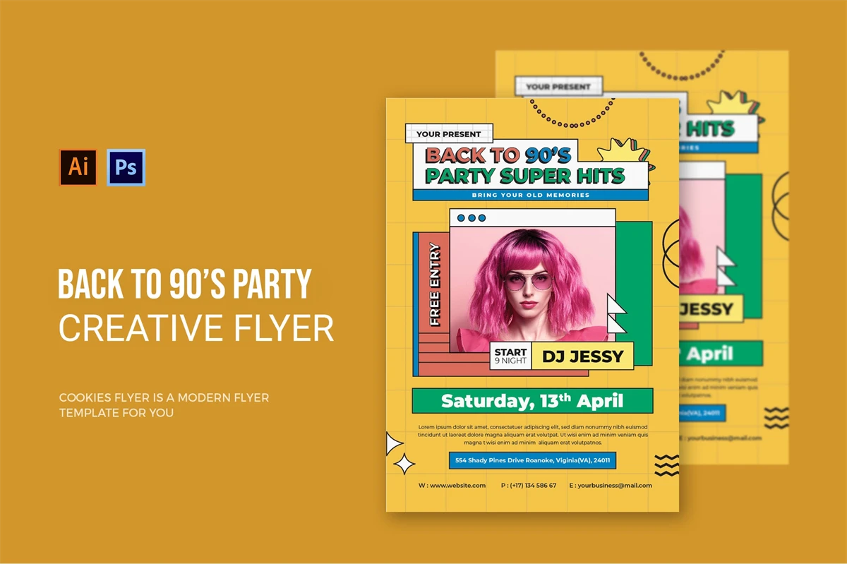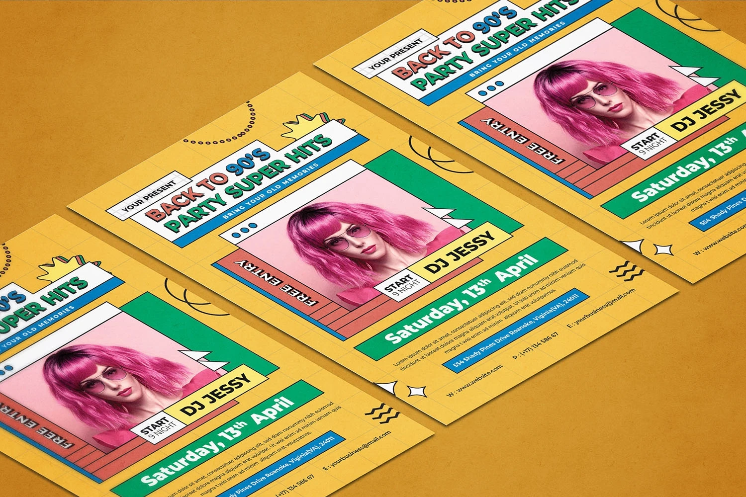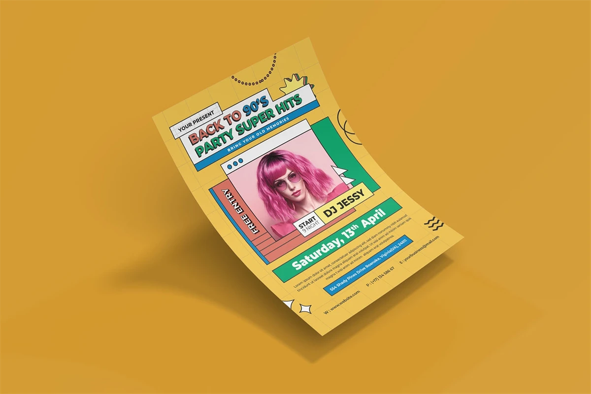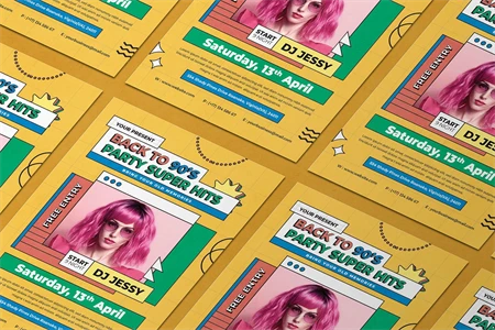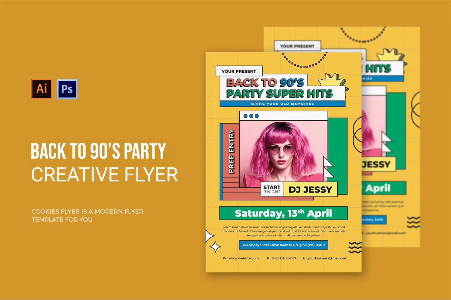 Back To 90's Party - Flyer. This Flyer template is designed for your company's business needs. very clean and elegant, and also easily edited and adjusted to your liking