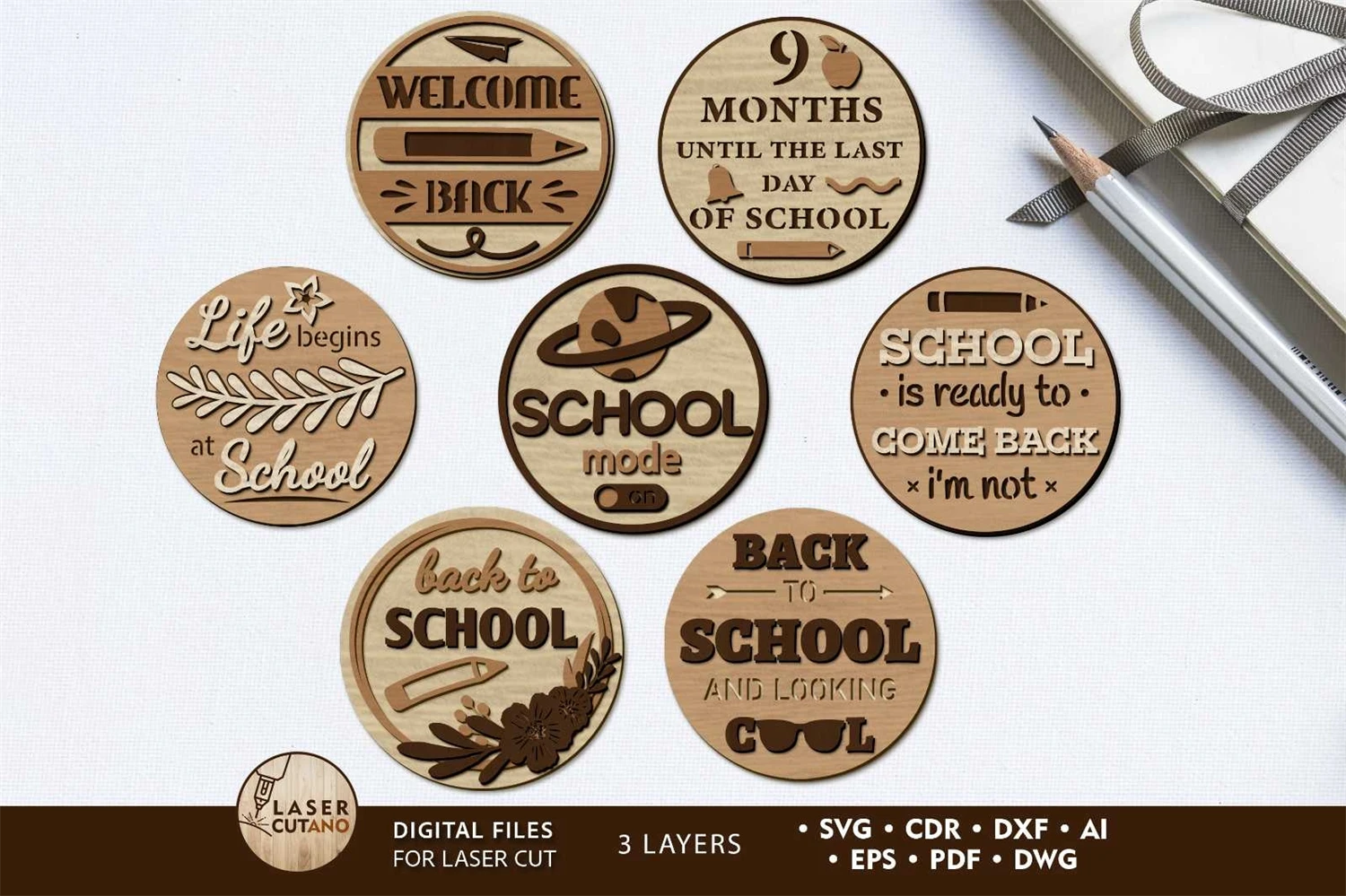 Back to School Digital multilayer layout files are specially prepared for the laser cut, CNC router machine and other cutting machines.