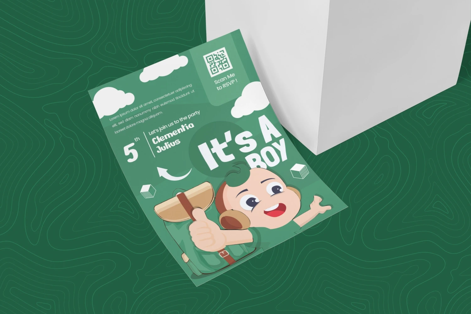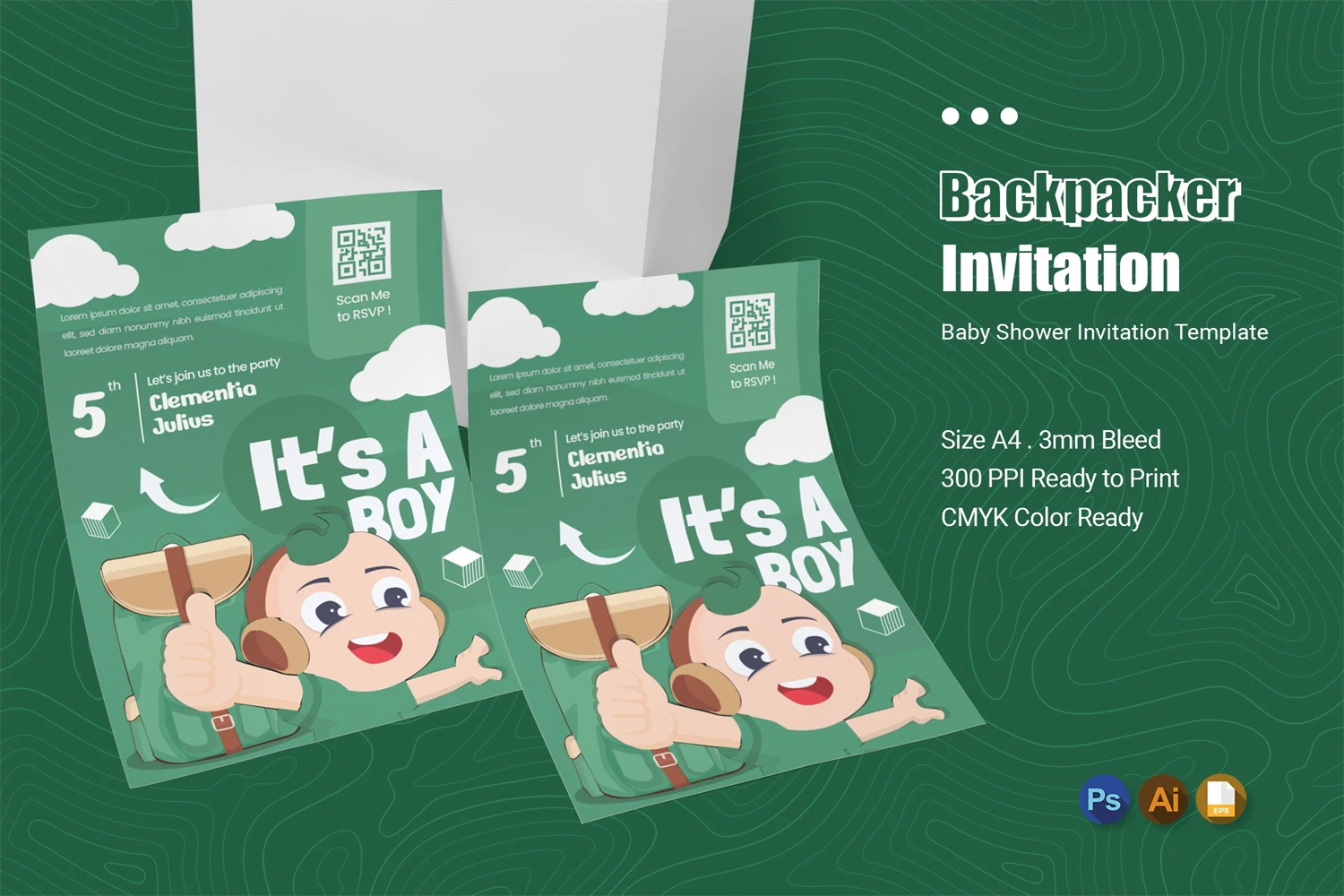 This baby shower invitation card template makes your invitation card look enjoyable, professional, and also simple. It's perfect for parents who want to celebrate the birth of their baby. You can easily to customize to your needs if using **illustrator** you just need to Drag your Image, select the image and placeholder, then right click select Make