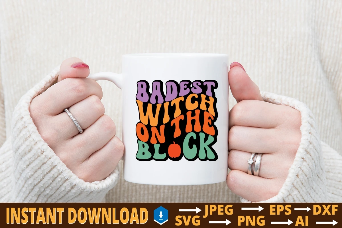 Badest Witch On The Block Retro HalloweenSVG Cut File Design
