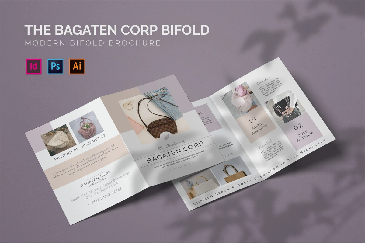 Bagaten Corp - Bifold Brochure We present this Bifold Brochure for you, simple and very elegant, and this Bifold Brochure is suitable for all types of your business, made with Adobe InDesign (INDD), Adobe Photoshop (PSD) and Adobe Illustrator (AI), very easy to customize, Hope you Like it, dont forget to rate, Thanks.