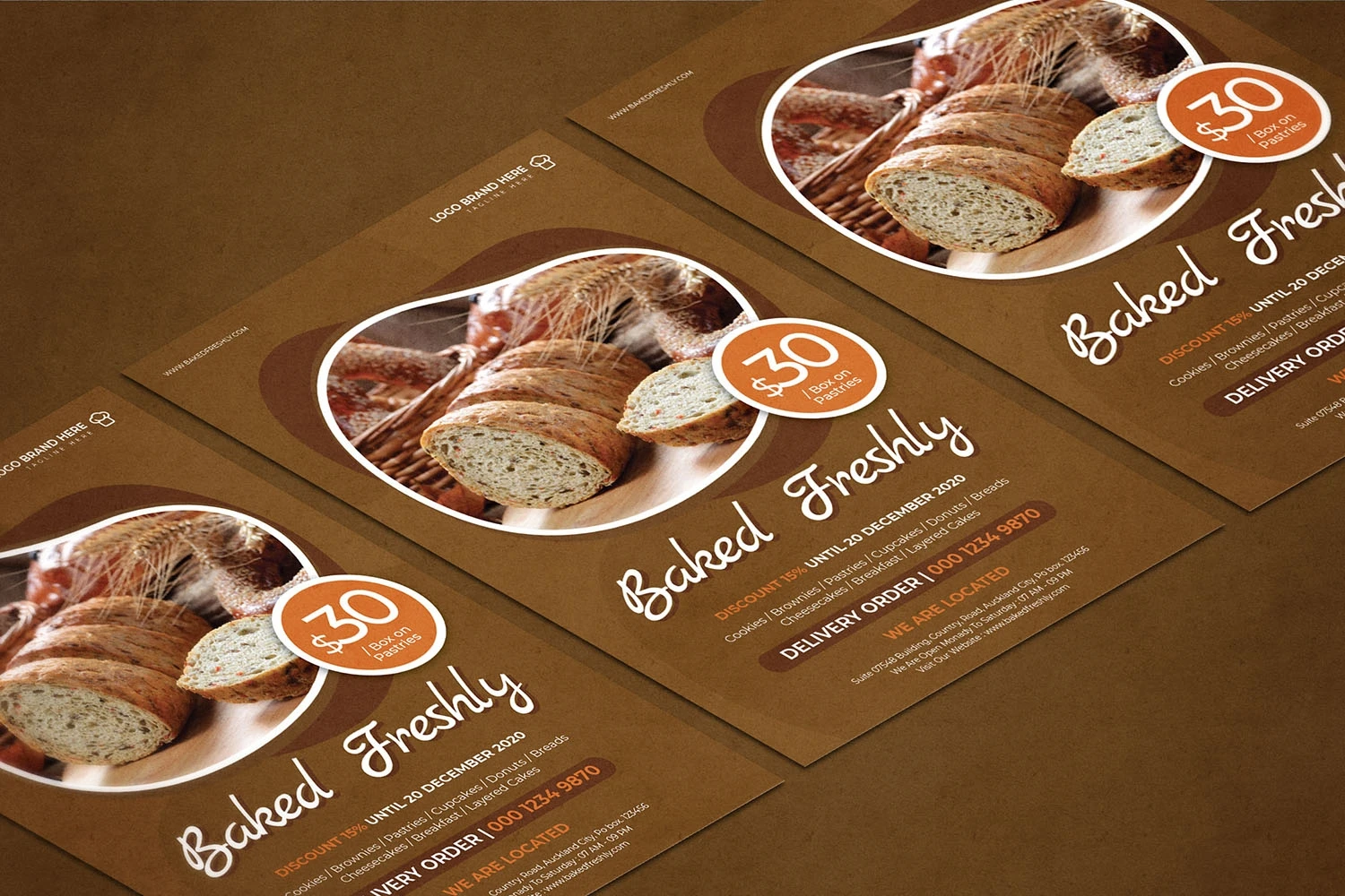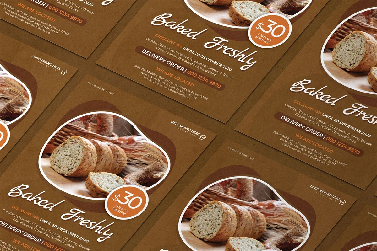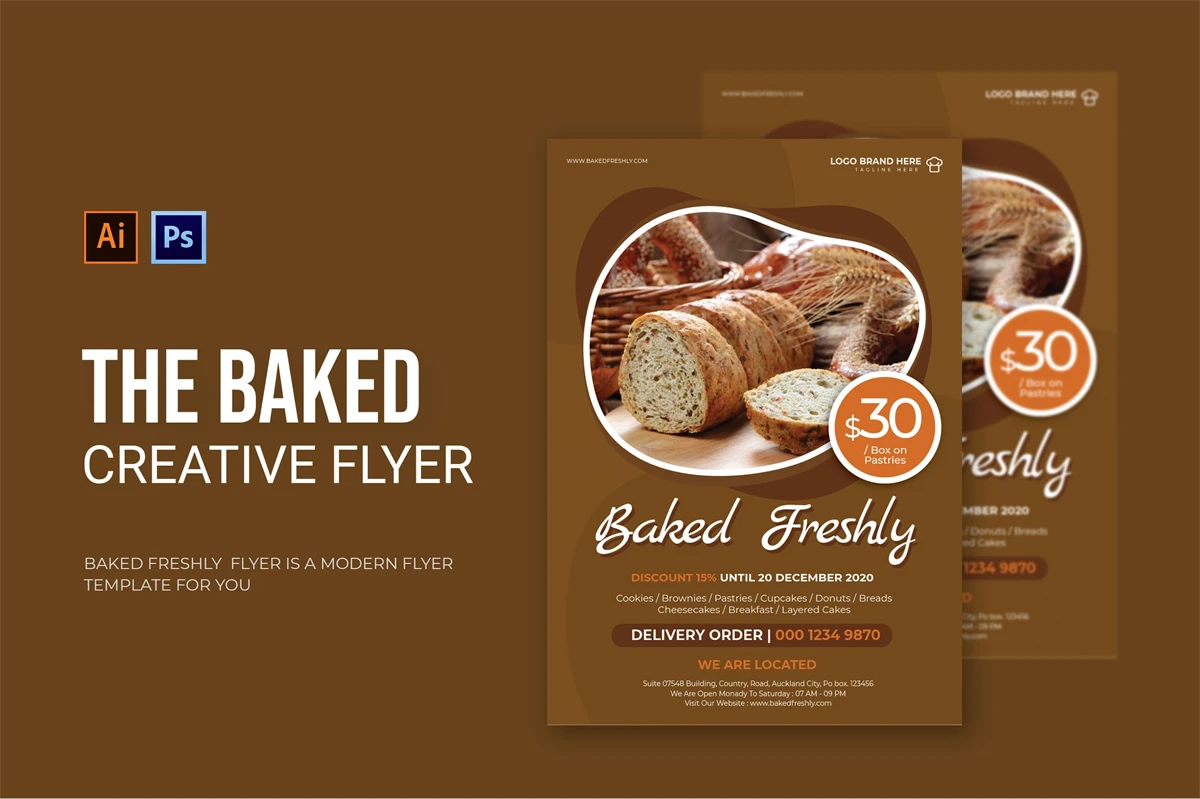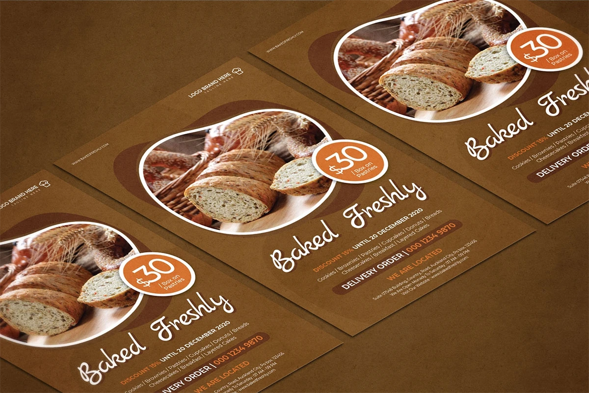 Baked Freshly - Flyer. This Flyer template is designed for your company's business needs. very clean and elegant, and also easily edited and adjusted to your liking