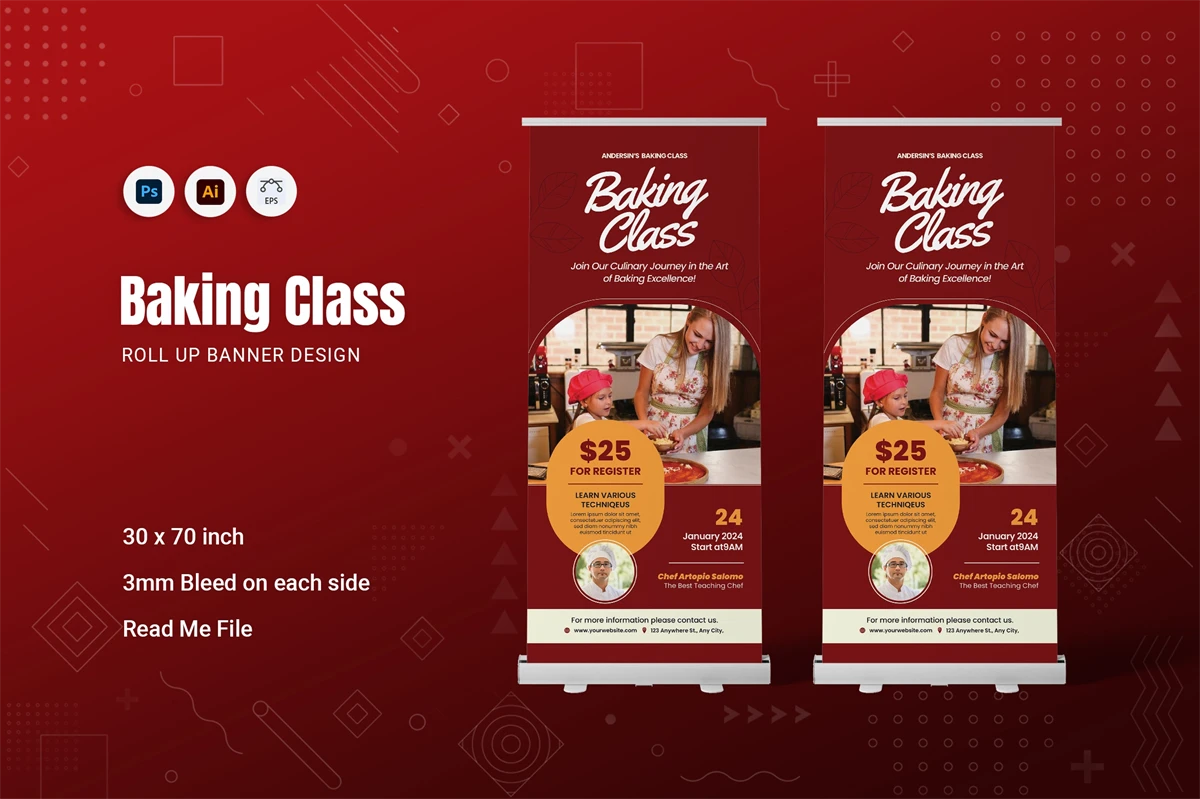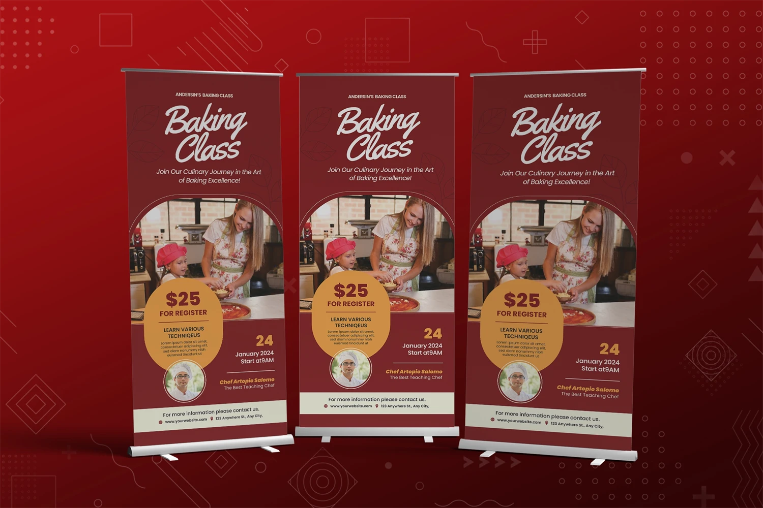 Instantly communicate your brand's through our roll-up banner template. Its standout design is optimized for the impactful presentation of visuals and content alike.