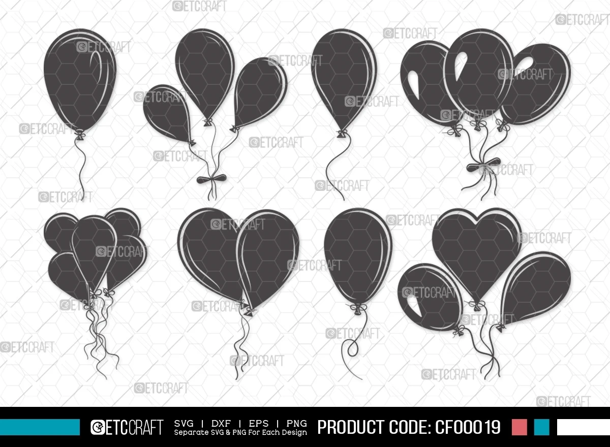 Elevate the joy of your celebrations with our Balloon Silhouette Birthday Hot Air Balloons String SVG Cut File Bundle. This digital design collection features a delightful range of balloon-themed silhouettes in versatile SVG, DXF, EPS, and PNG formats. Whether you're planning a birthday extravaganza or a creative project, this bundle offers endless creative opportunities to add a whimsical touch to your designs.