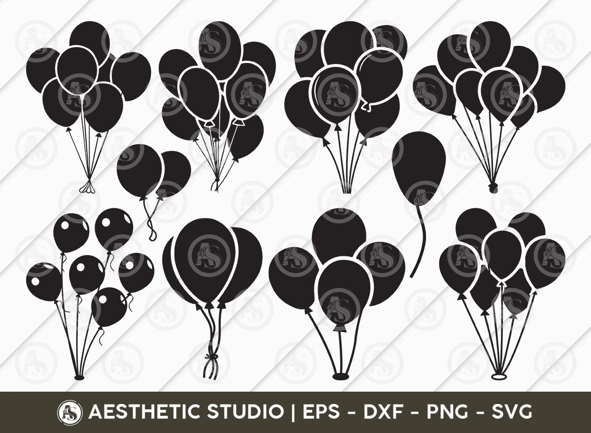Elevate your creativity to new heights with our Balloons SVG & Balloons Silhouette Collection. This meticulously curated set of digital assets, available in SVG, DXF, PNG, and EPS formats, invites you to infuse your designs with the joy, celebration, and colorful charm of balloons.