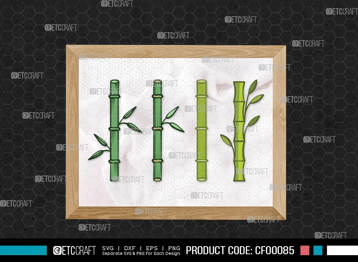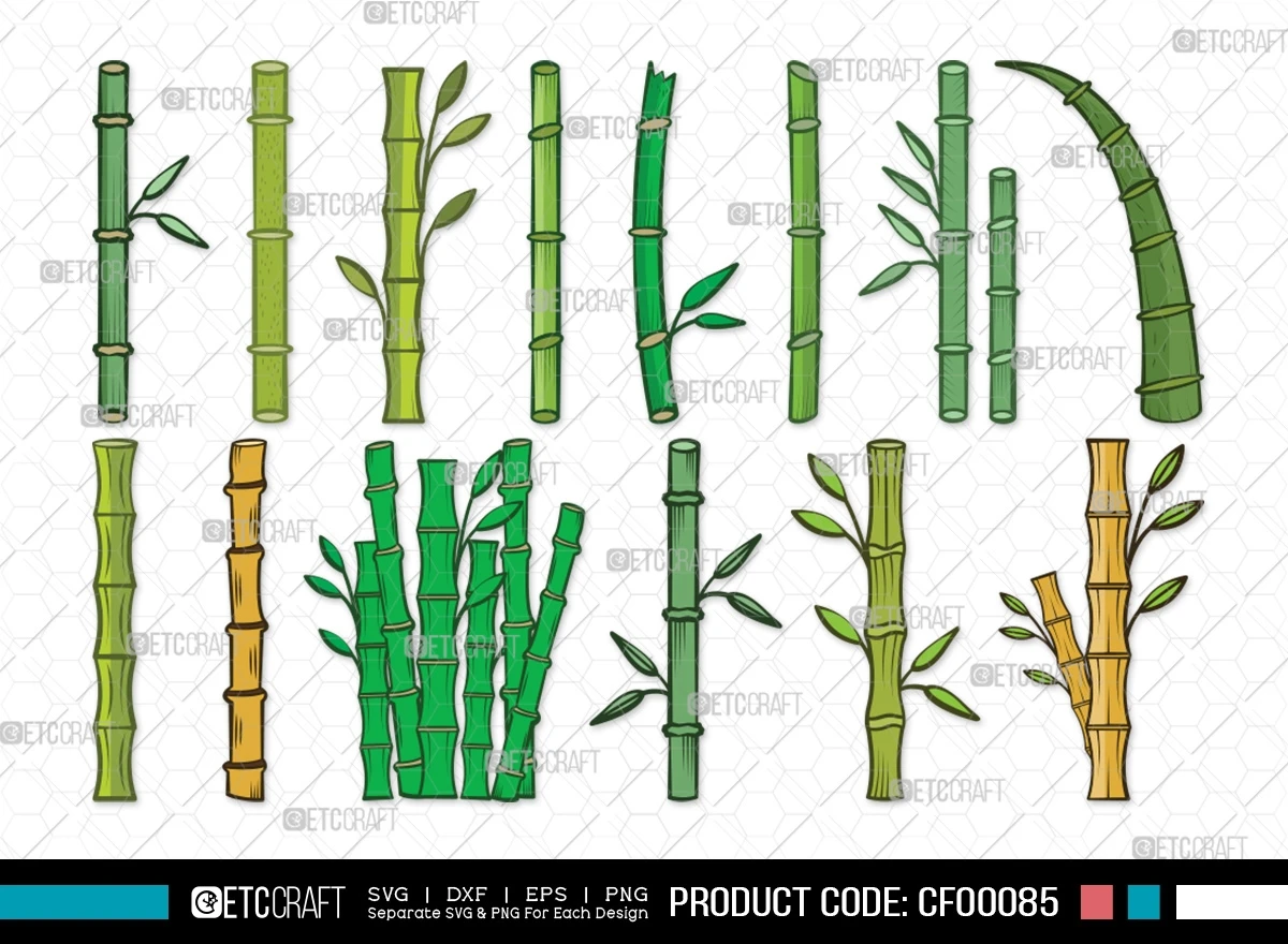 Explore the elegance of nature with our Bamboo Clipart Cane Plant Stems Leaf SVG Cut File Bundle. This collection features intricate designs inspired by bamboo, perfect for adding a touch of natural beauty to your creative projects.