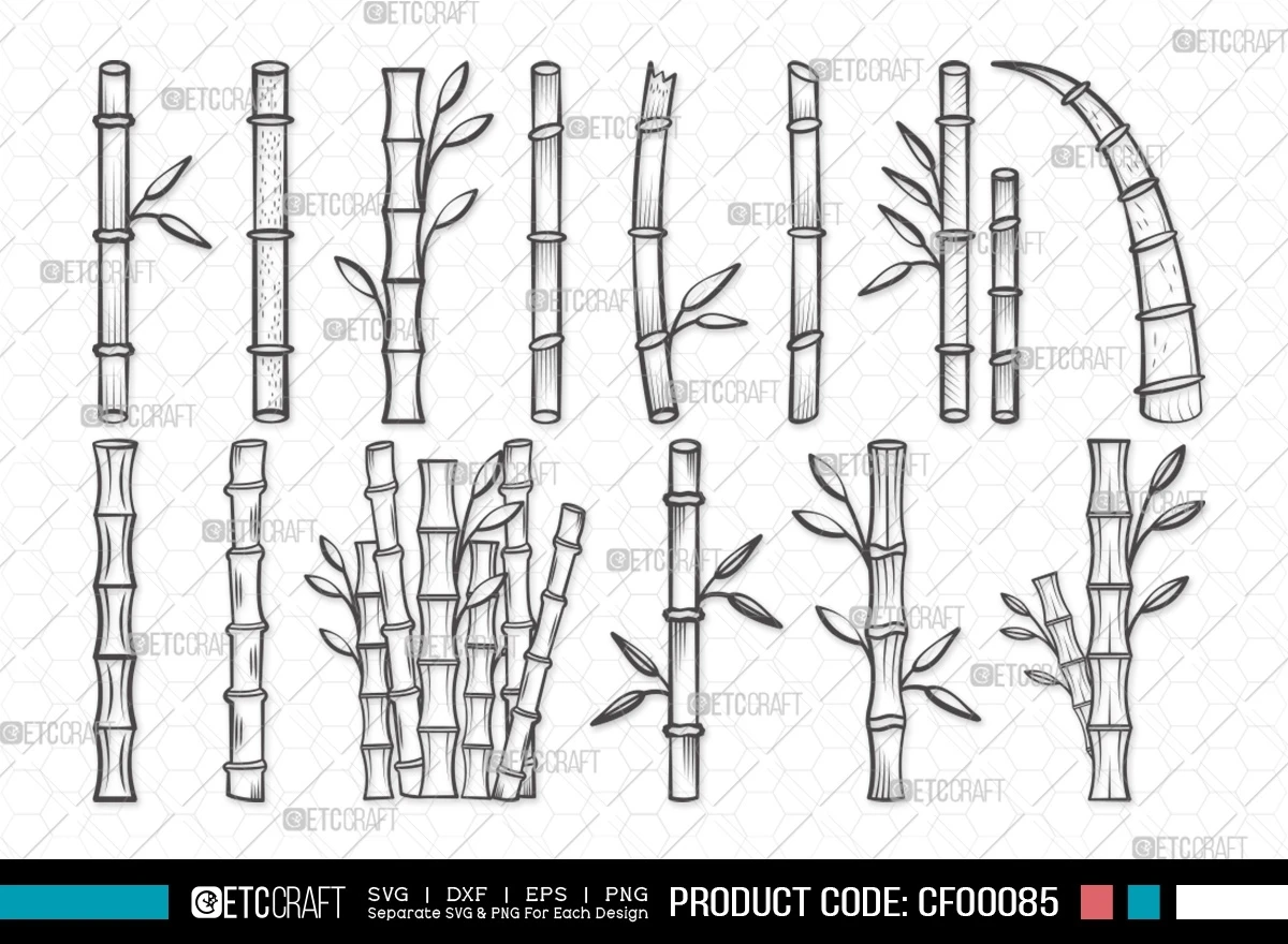 Discover the beauty of nature with our Bamboo Outline Cane Plant Stems Leaf SVG Cut File Bundle. This collection offers meticulously outlined designs inspired by bamboo, allowing you to infuse the grace of nature into your creative projects.
