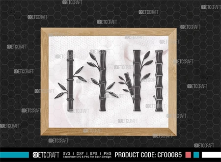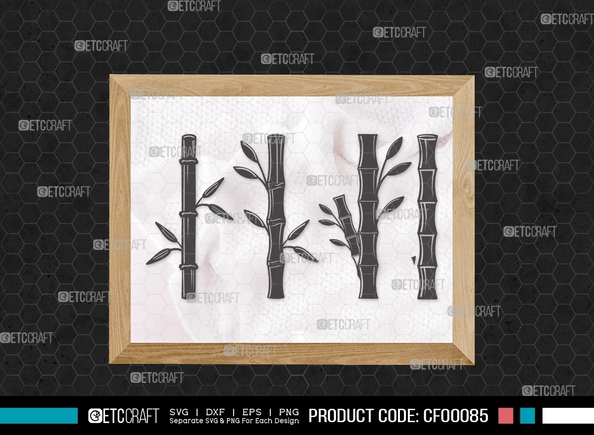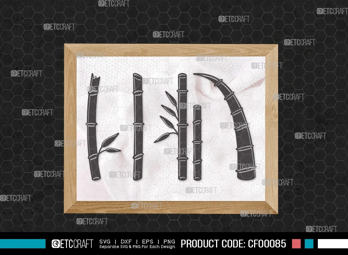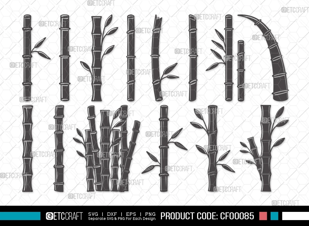 Explore the beauty of nature with our Bamboo Silhouette Cane Plant Stems Leaf SVG Cut File Bundle. This collection presents intricately designed silhouettes inspired by bamboo, allowing you to infuse the essence of nature into your creative projects.