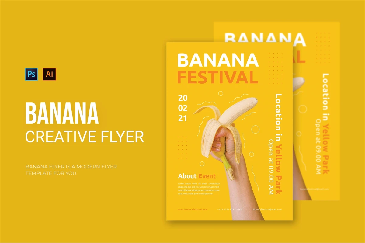 Banana Festival - Flyer. This Flyer template is designed for your company's business needs. very clean and elegant, and also easily edited and adjusted to your liking