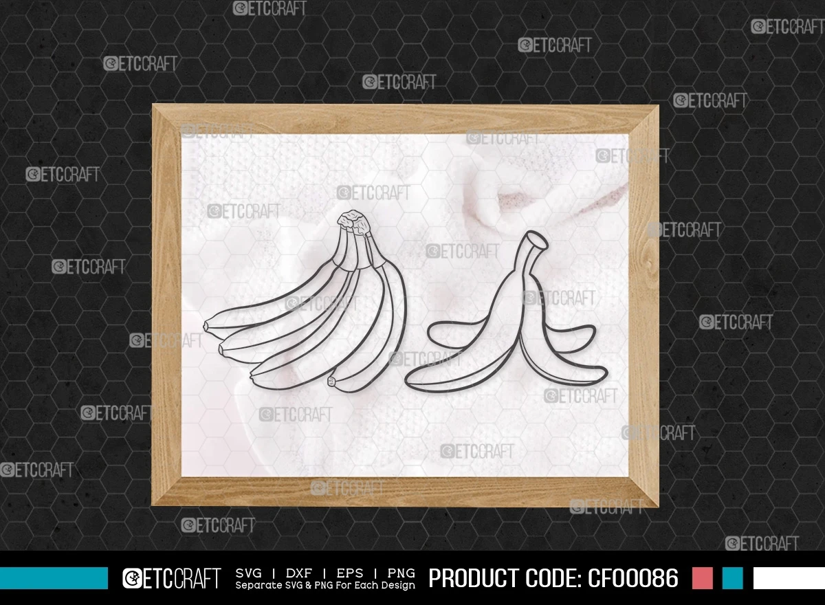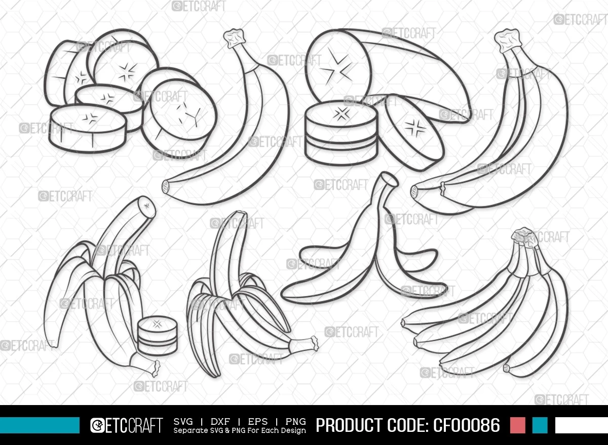 Explore the tropical allure with our Banana Outline Peeled Tropical Fruits Bunch SVG Cut File Bundle. This collection offers beautifully outlined banana clipart, perfect for bringing a touch of the tropics to your creative projects.