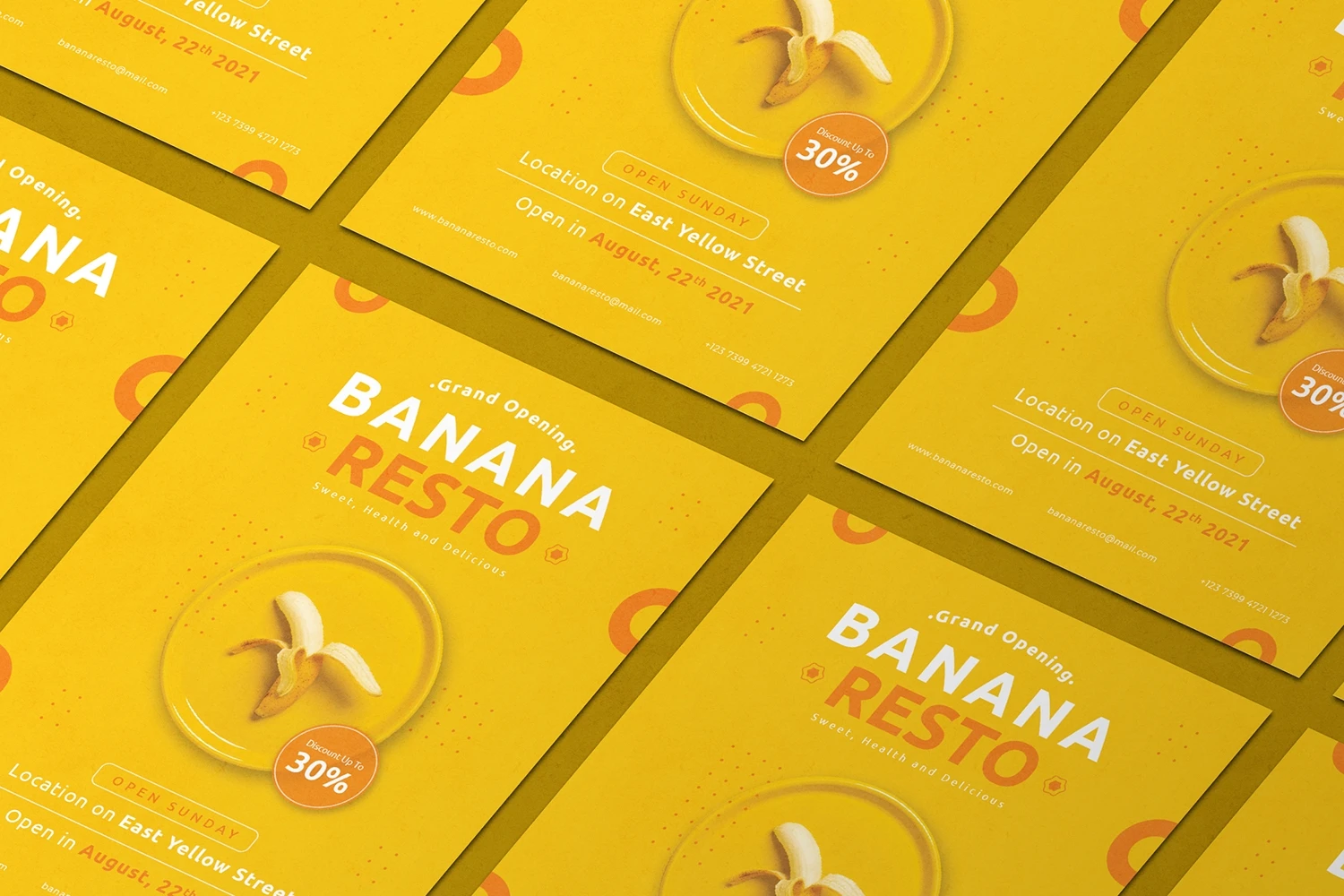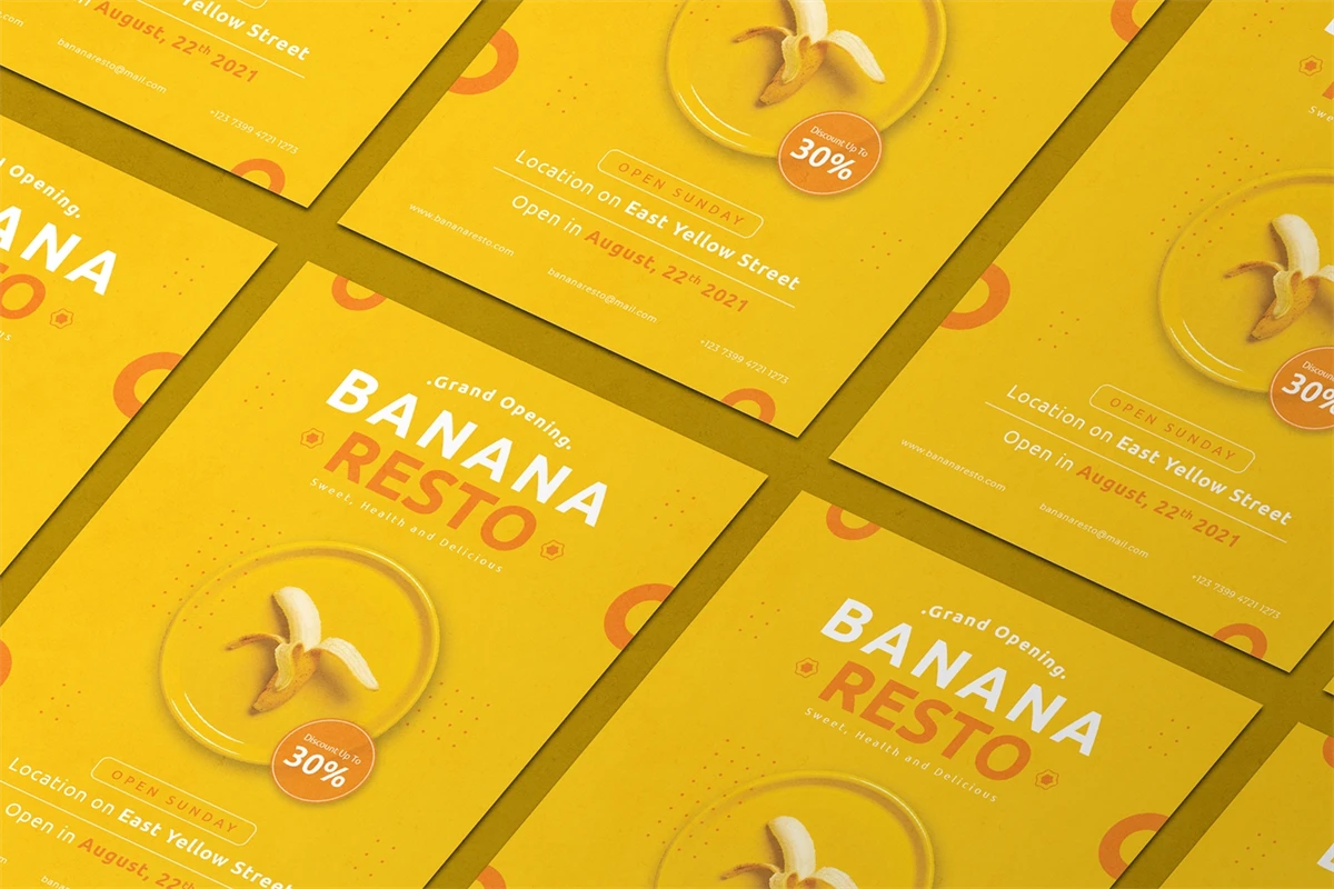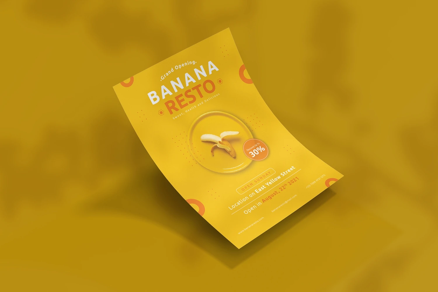 Banana Resto - Flyer. This Flyer template is designed for your company's business needs. very clean and elegant, and also easily edited and adjusted to your liking