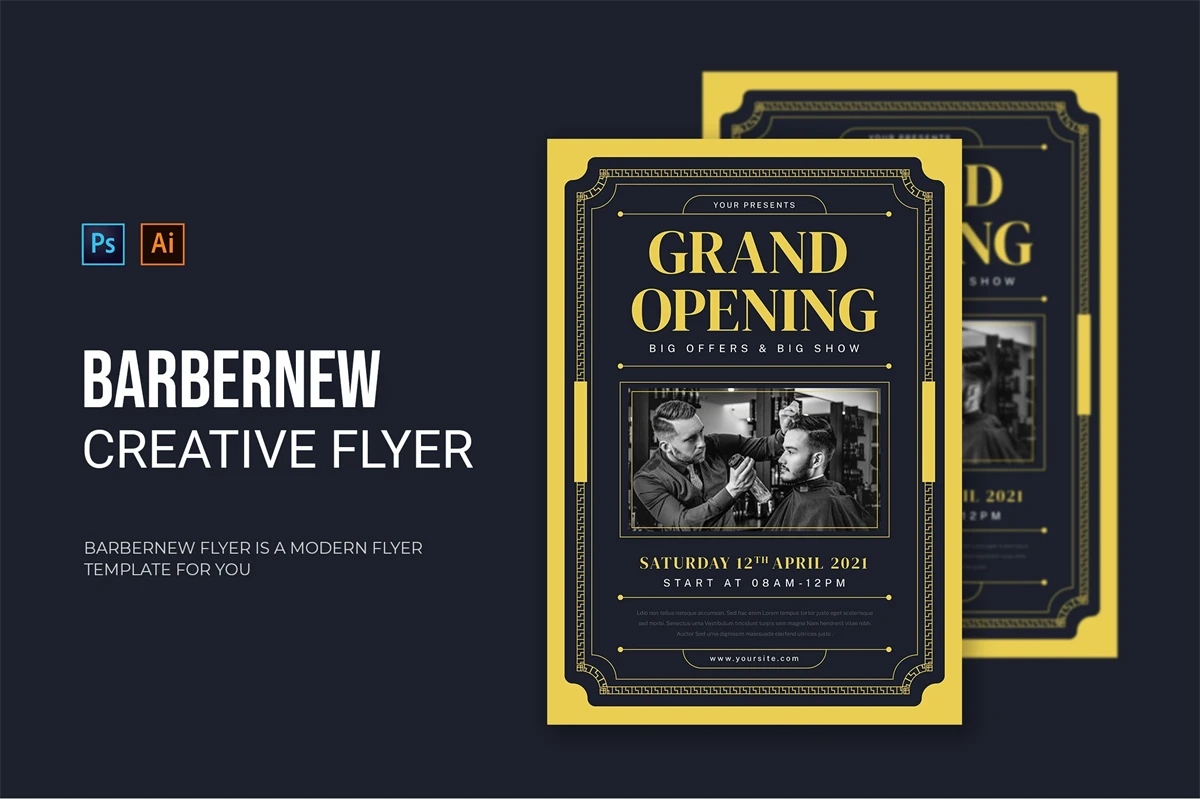 Barbernew - Flyer. This Flyer template is designed for your company's business needs. very clean and elegant, and also easily edited and adjusted to your liking