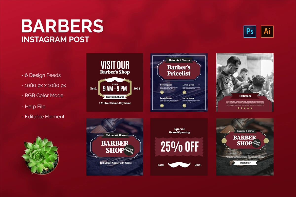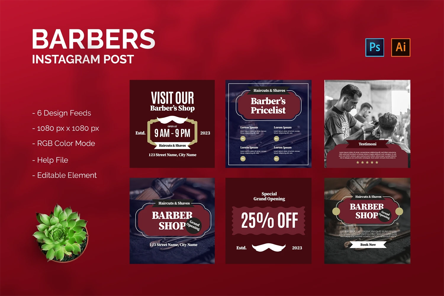 Barbers - Instagram Post Presenting your Instagram posts to promote your content. This package will be perfect for engaging your followers, monetizing your content, and driving traffic to your website, store, and profile.