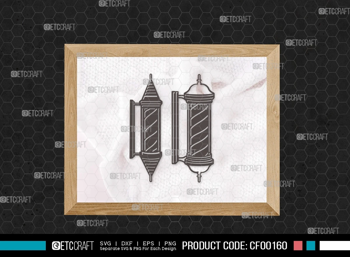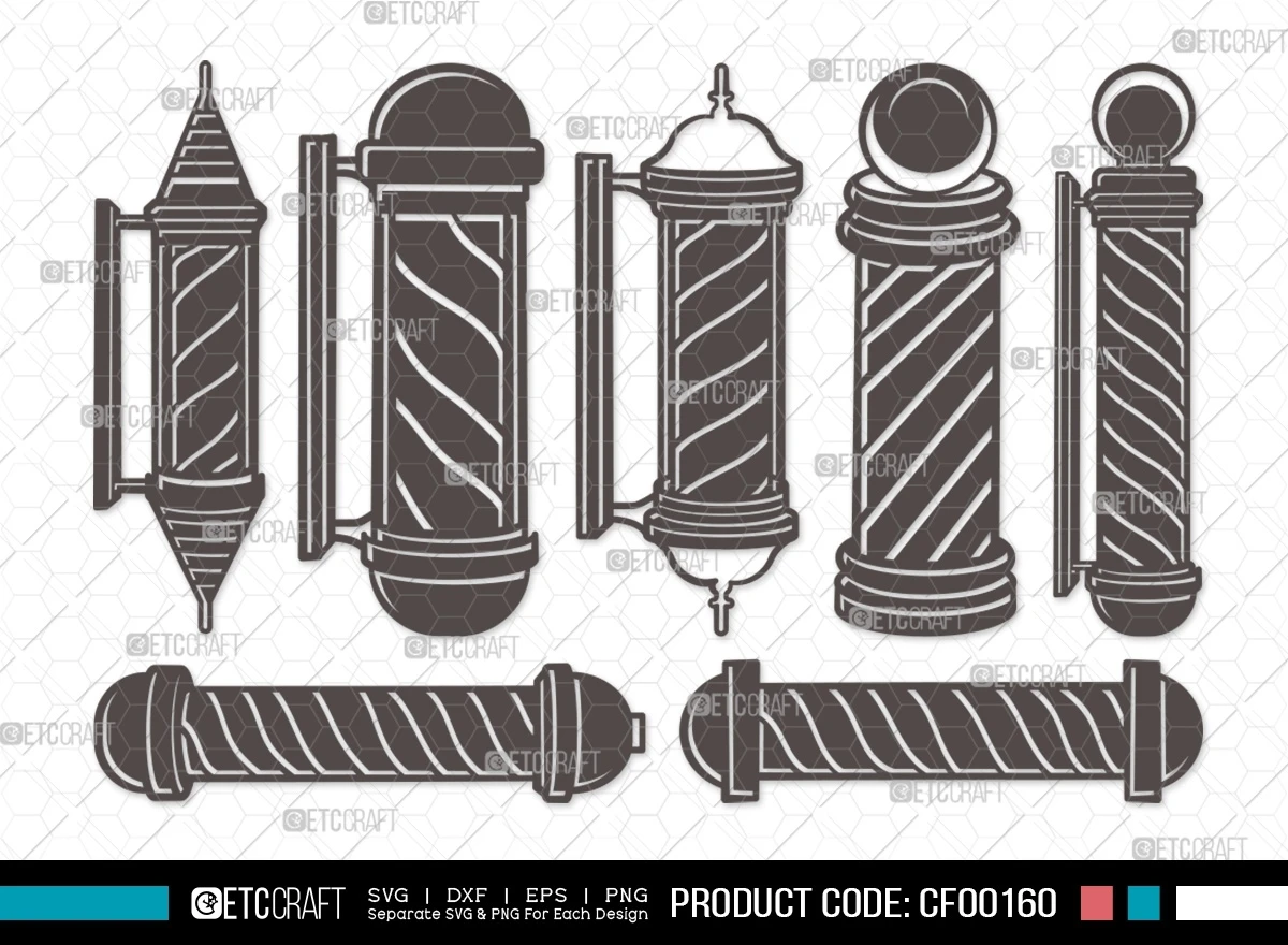Step into the classic world of barbershops with our Barbers Pole Silhouette Barbershop Light Salon SVG Cut File Bundlea digital collection designed to infuse vintage elegance into your creative projects. Embrace the timeless charm of barbershop aesthetics with meticulously crafted silhouette clipart files, perfect for enhancing your designs.