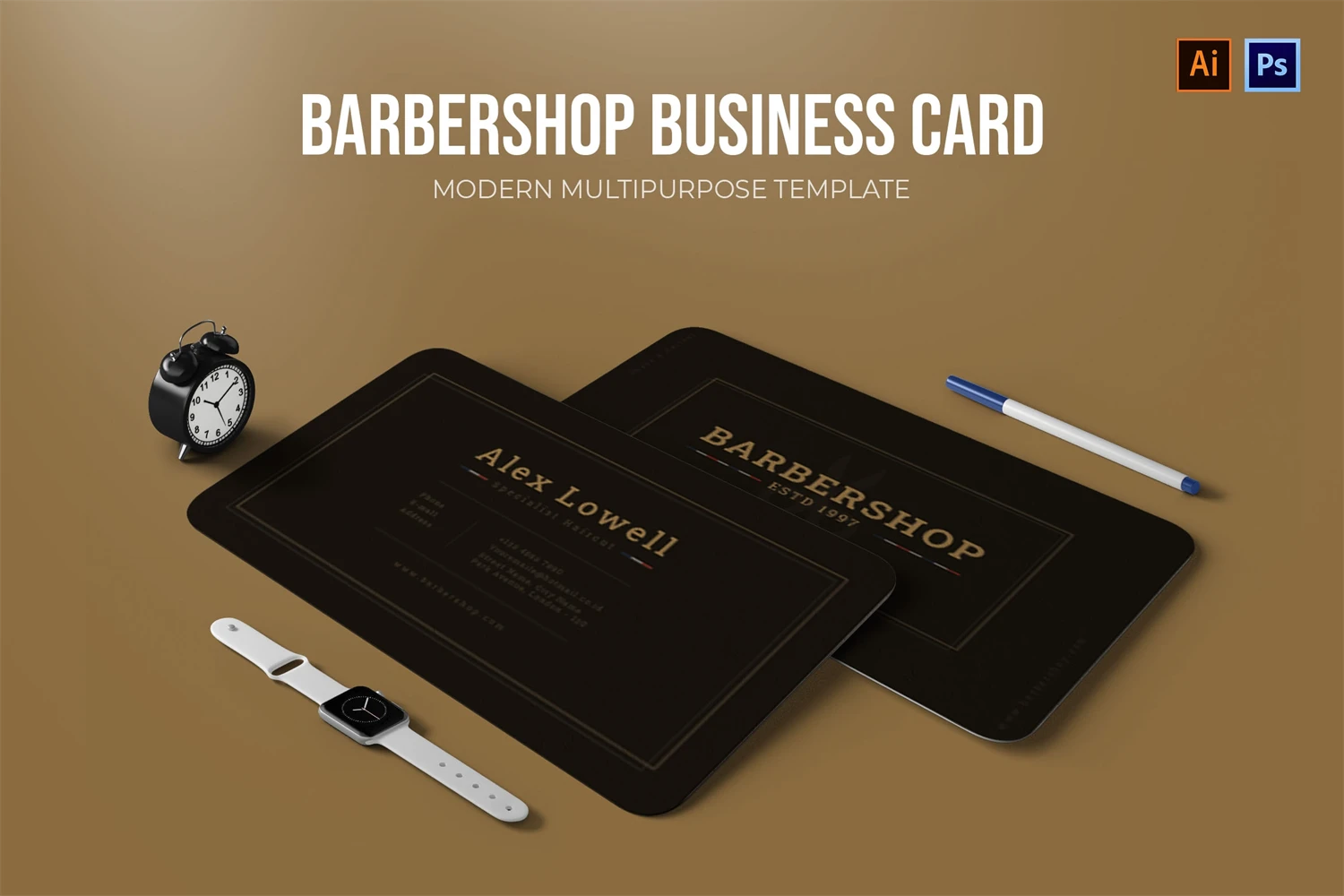 This Barbershop - Business Card make your business cards look professional. You can use this business card for, identity, company business cards, Corporate Business, Creative, Blogs, Photographers, Artists, Designers, etc.