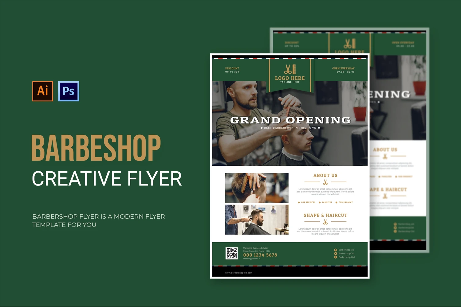Barbershop - Flyer. This Flyer template is designed for your company's business needs. very clean and elegant, and also easily edited and adjusted to your liking