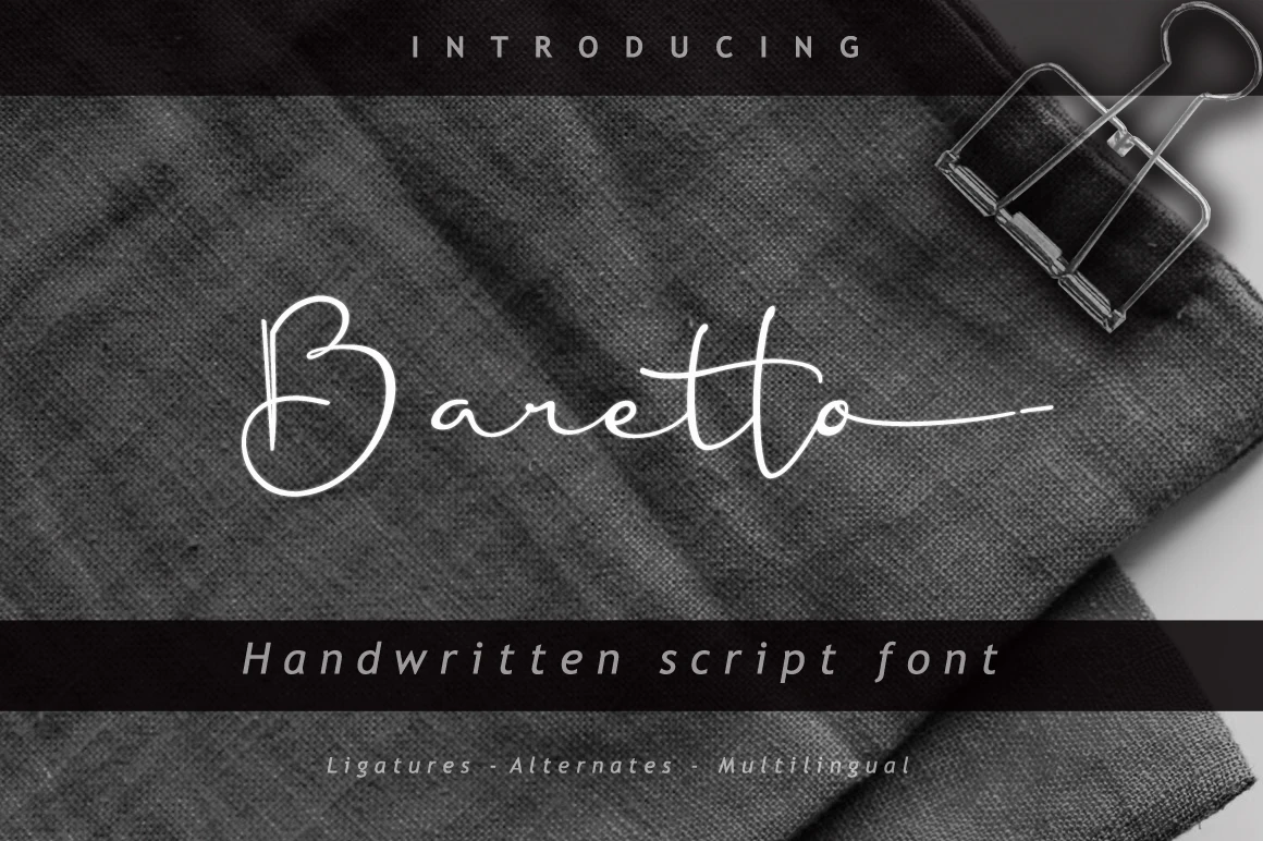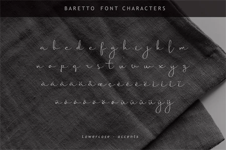 Baretto is a beautiful smooth handwritten script font.It provides realistic handwritten typeface in your design projects, absolutely suited for any display or text use.