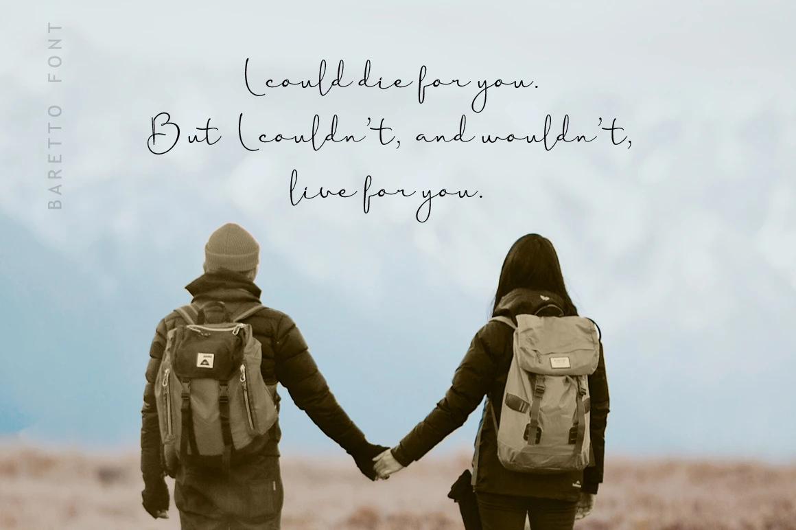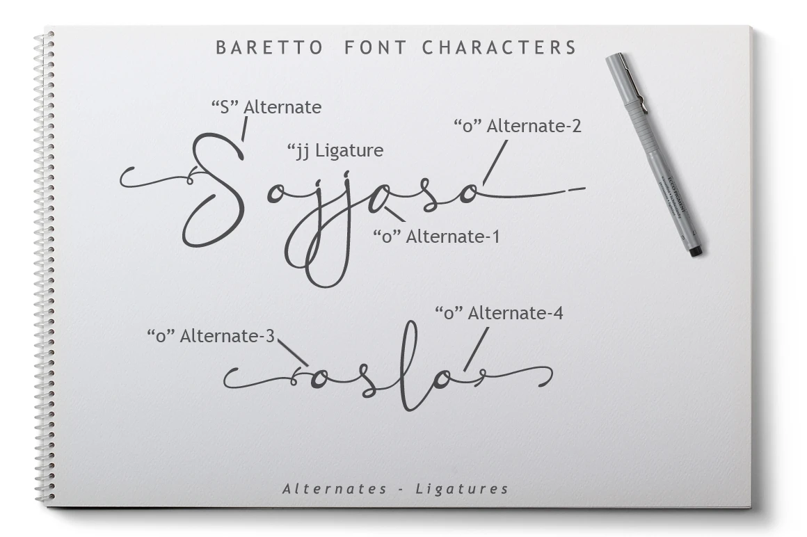 Enriched with beautiful alternates and ligatures. Baretto font perfect for branding, quotes, logos, wedding invites, product packaging, headers, cards and many more!.