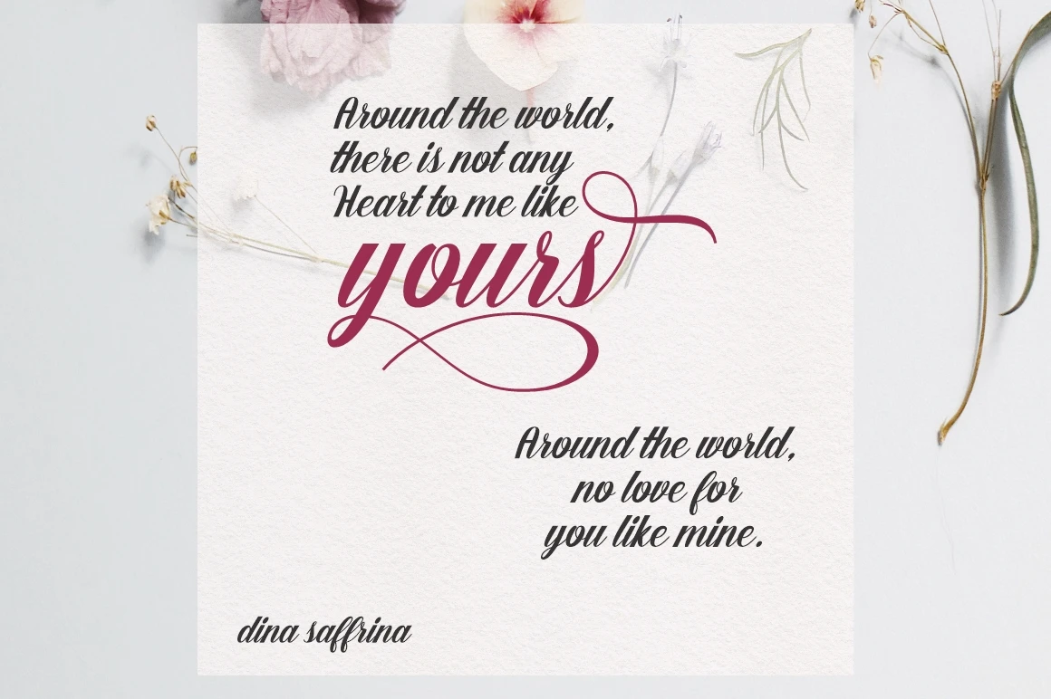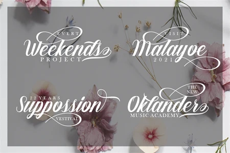 Barna is built with OpenType features and includes initial and final swash, alternative swash characters for most lowercase letters, numbers, punctuation, alternatives, ligatures and also supports some western languages.
