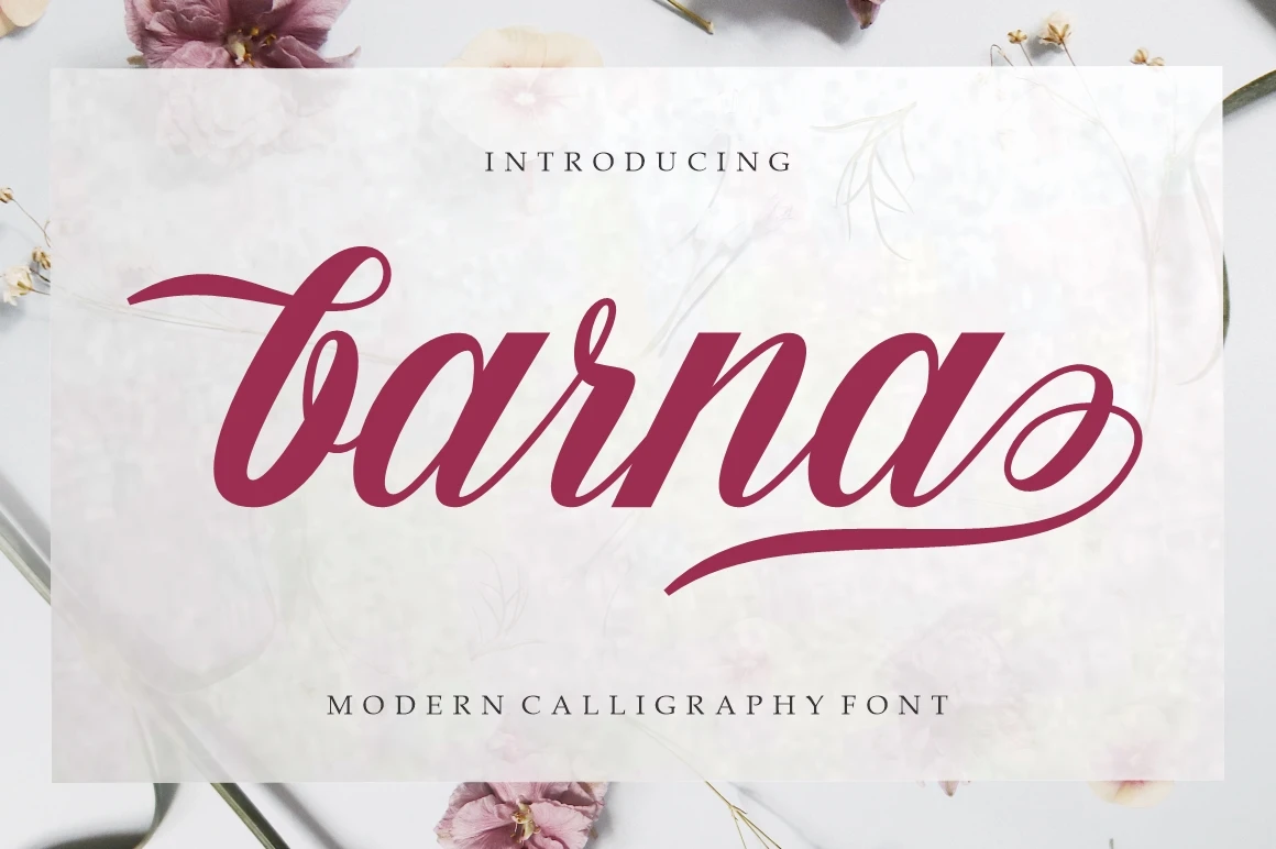 Barna is a modern calligraphy font. This font is made for those of you who need a touch of elegance and a reflection of modern style in their designs. You can use Barna for various purposes such as logos, brochures, business cards, wedding invitations, packaging, letterhead, labels, news, posters, and more.