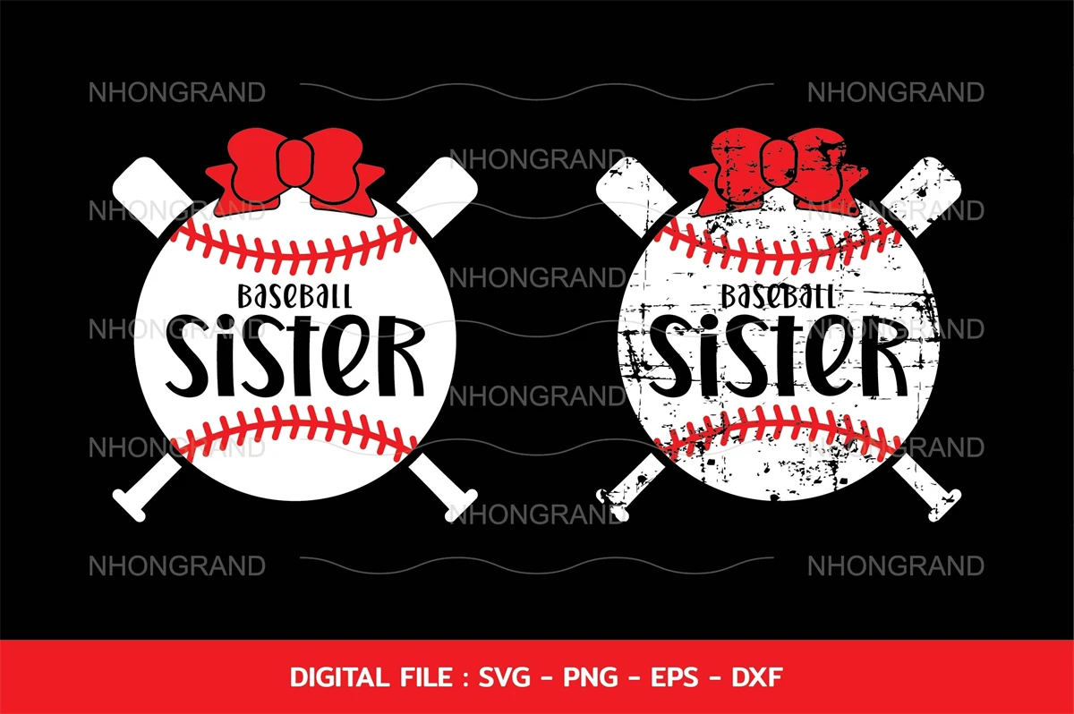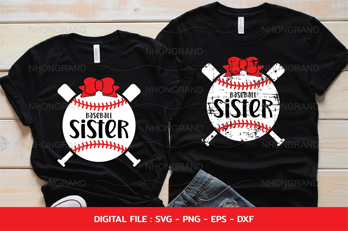 Baseball Sister svg, red bow cutie and grunge Sister gift for sister and family t-shirt, Cricut Files, svg, png, eps, dxf, Instant Download