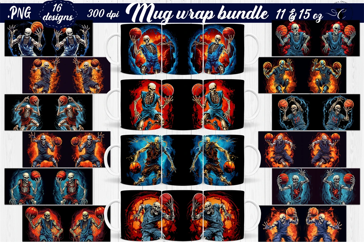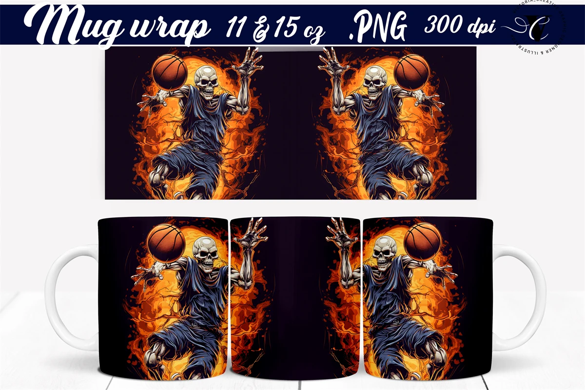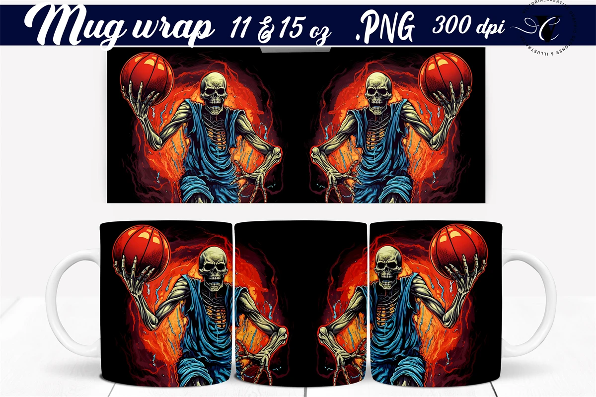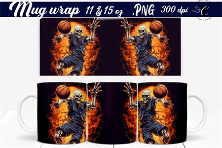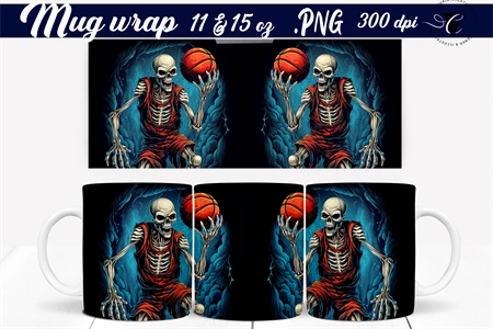 Skeleton playing basketboll, Mag sublimation bundle, Halloween mug wrap
