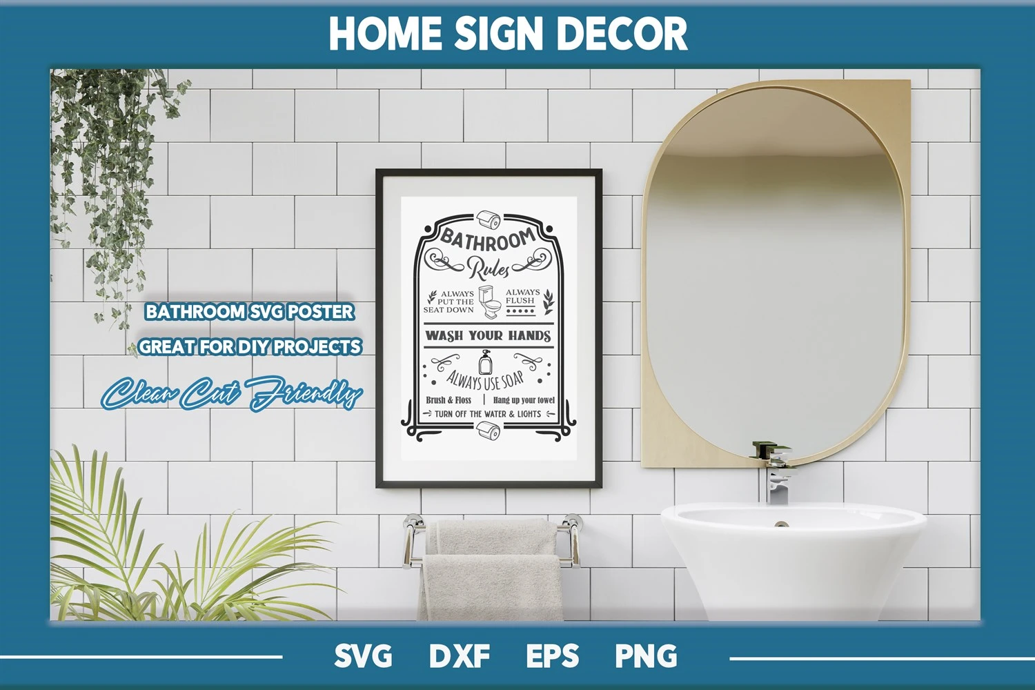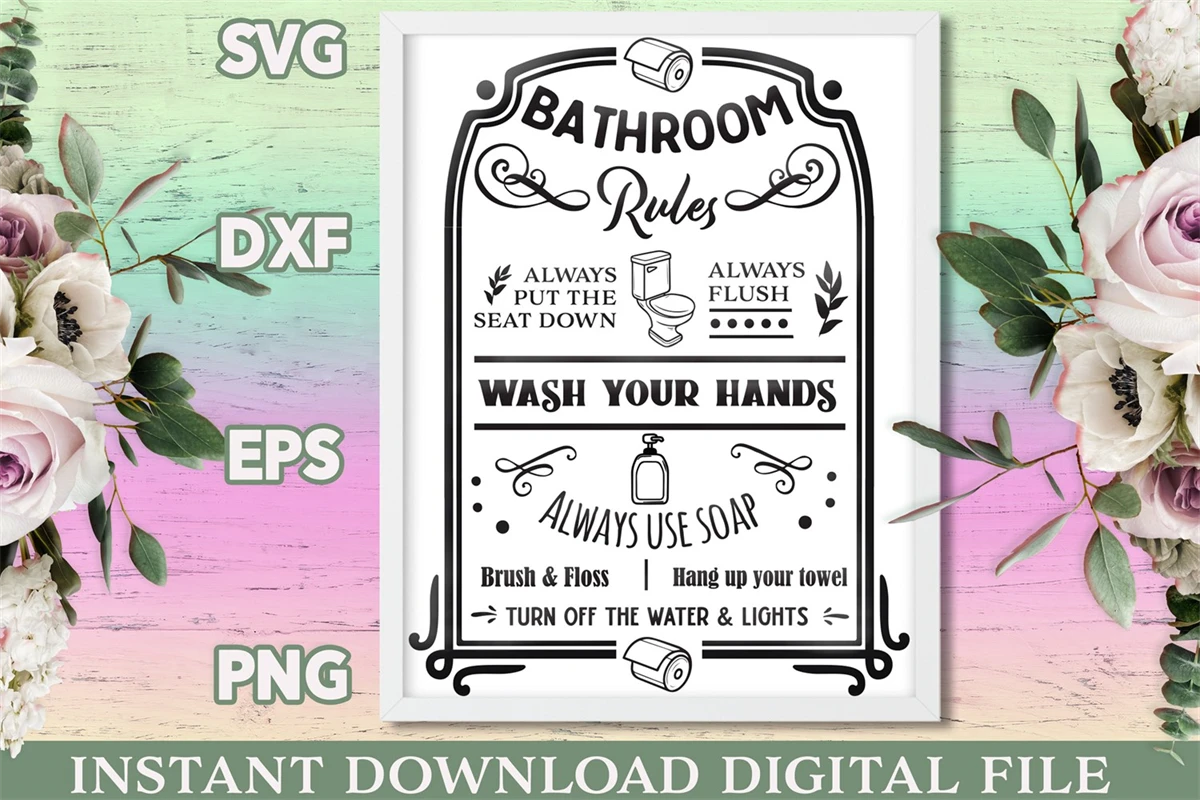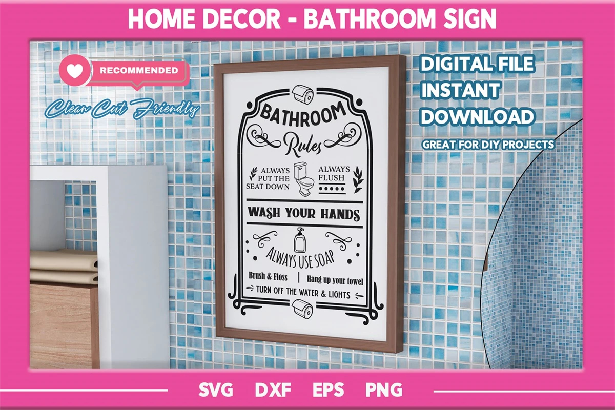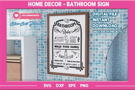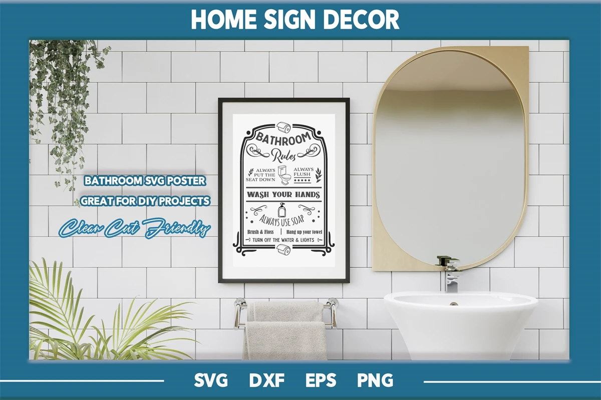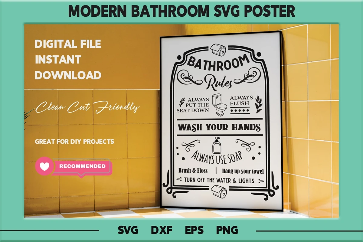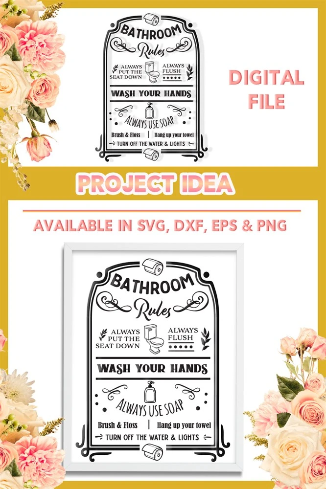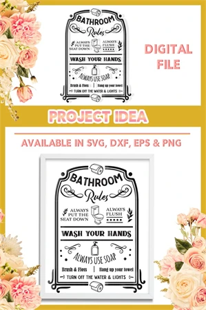 The main objective when creating this bathroom sign has been to have a wall art poster for you to decorate your home. You can use this cut file as a printable, wood sign, canvas, and poster. You can also print it as a vinyl decal and stick it straight to your bathroom wall or your toilet seat tanks if there's enough room.