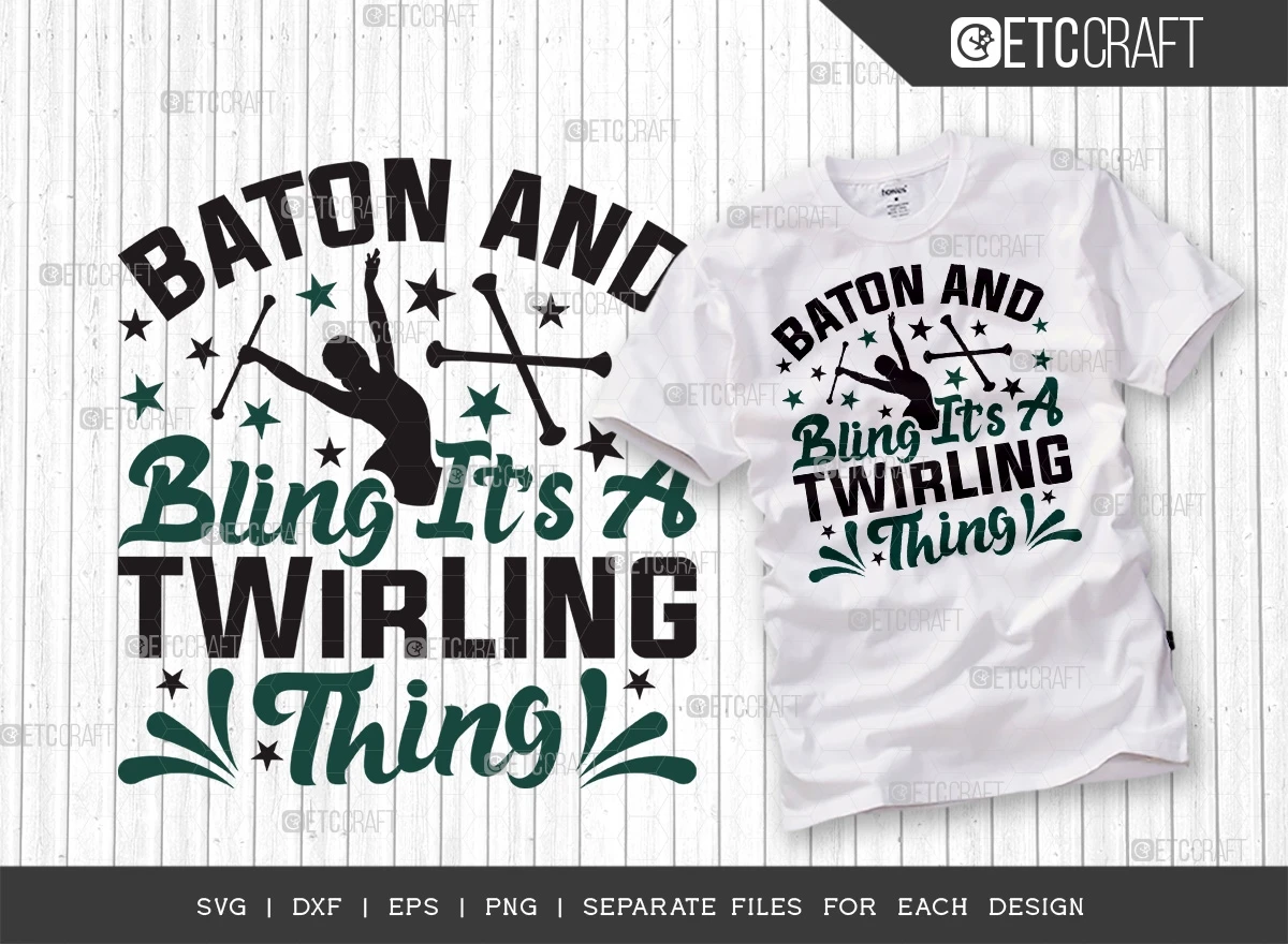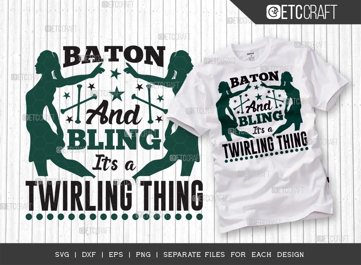 Introducing the Baton And Bling "It's a Twirling Thing" SVG Bundle! This captivating t-shirt design is perfect for twirlers, gymnasts, and anyone who loves the art of twirling. Here are the top reasons why you should buy this unique design: