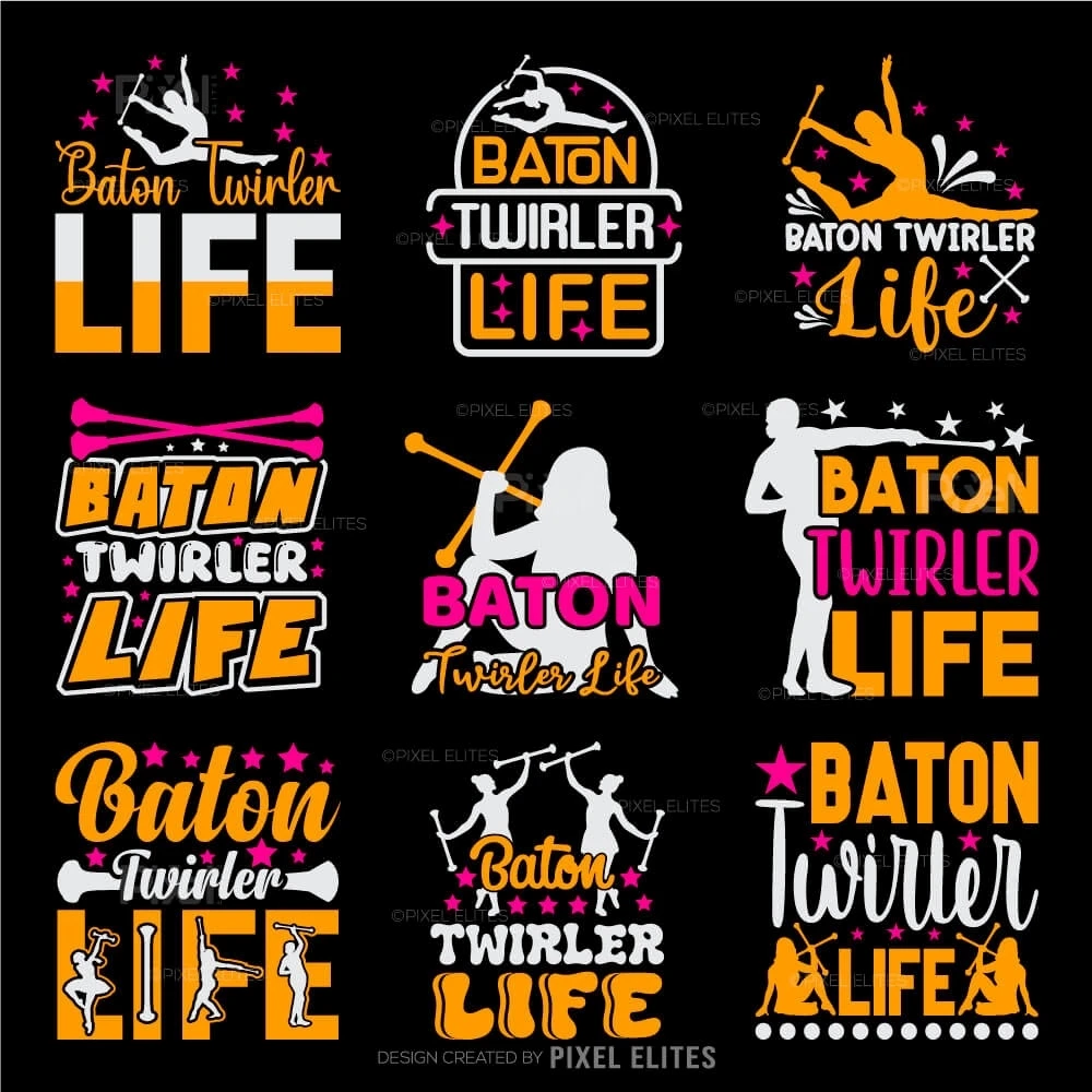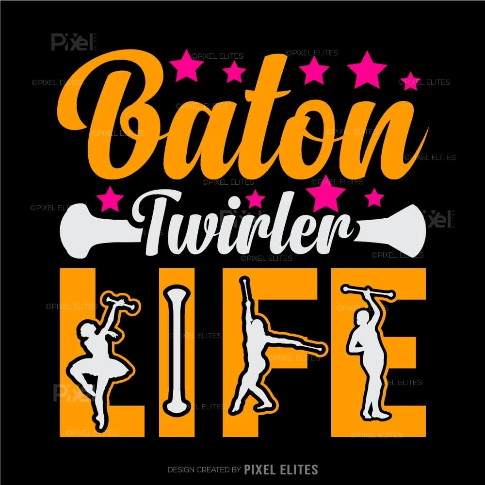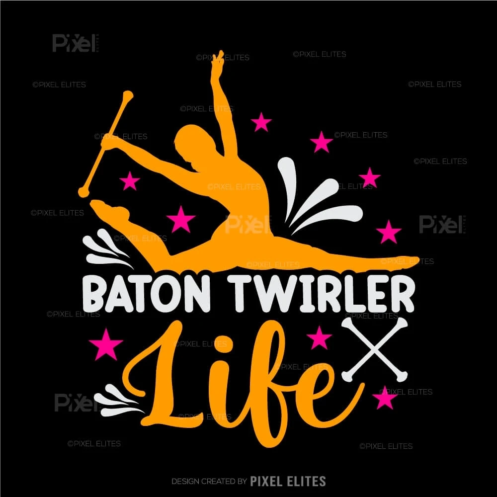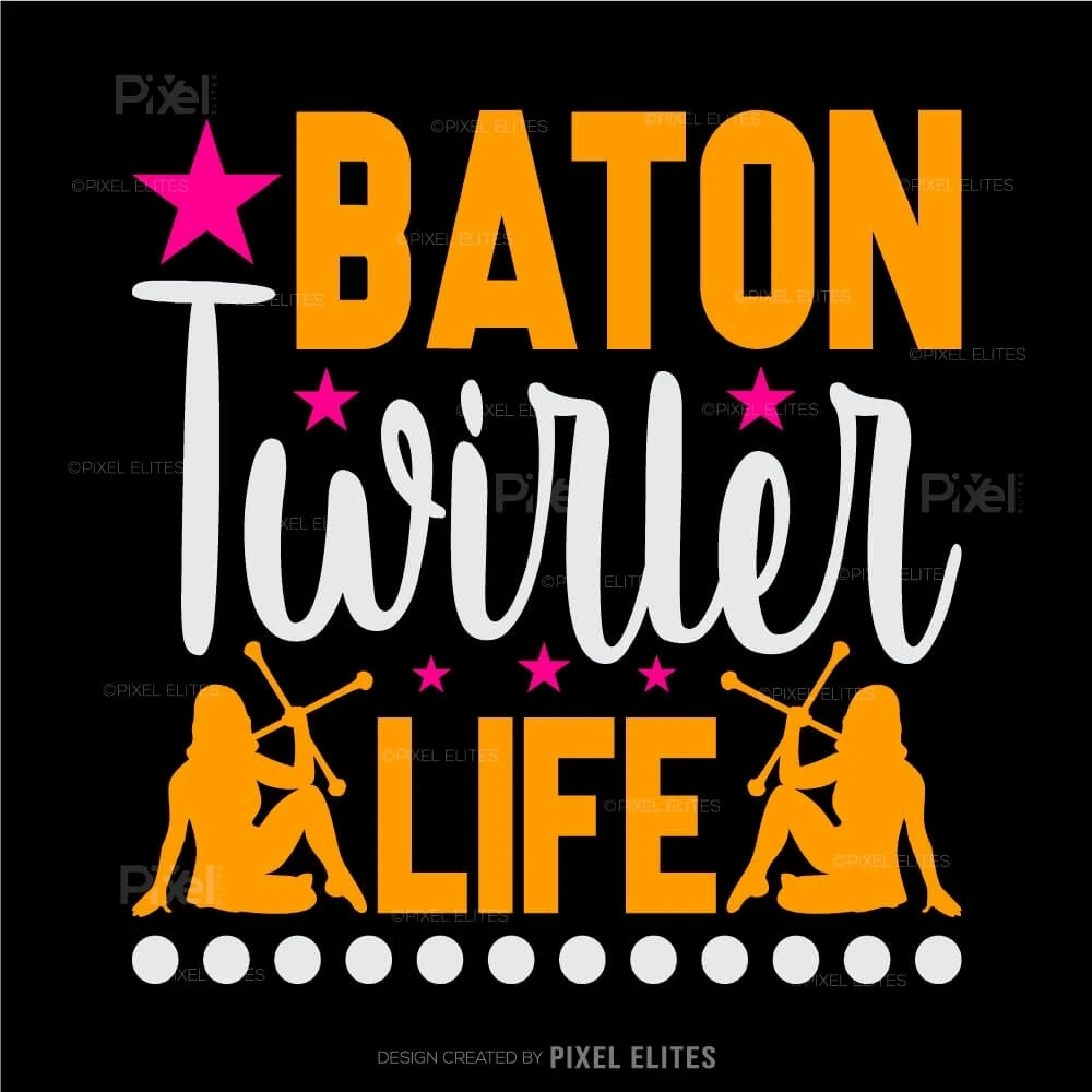 Product Description: Baton Twirler Life SVG Cut Files - T-Shirt Design, Twirls Quote, Baton Gymnast