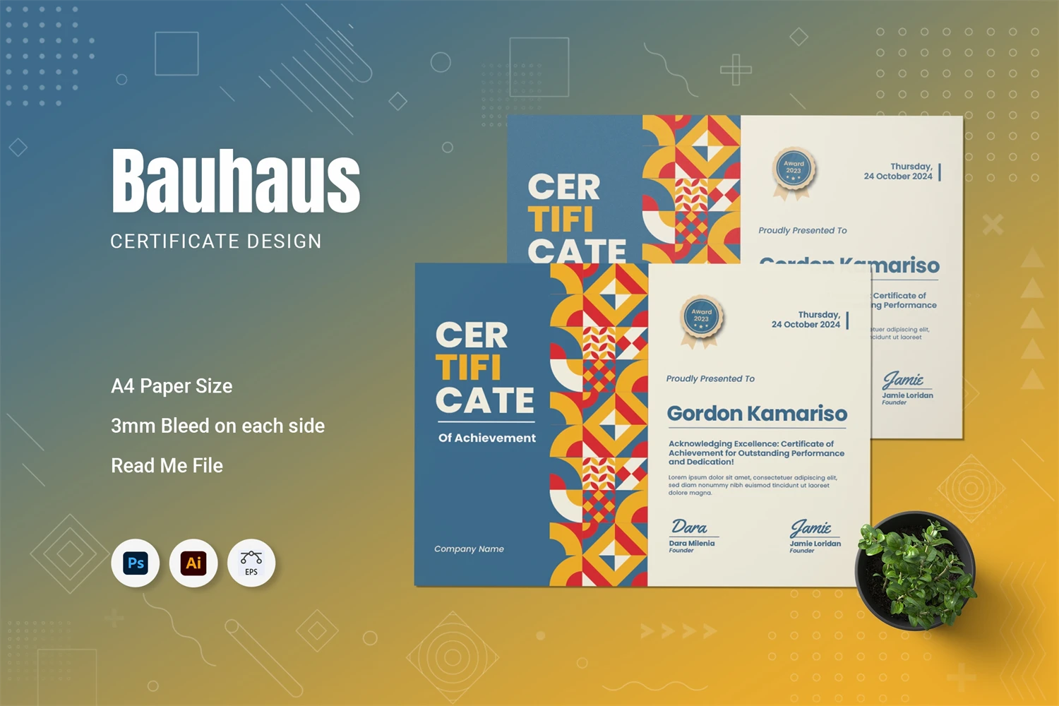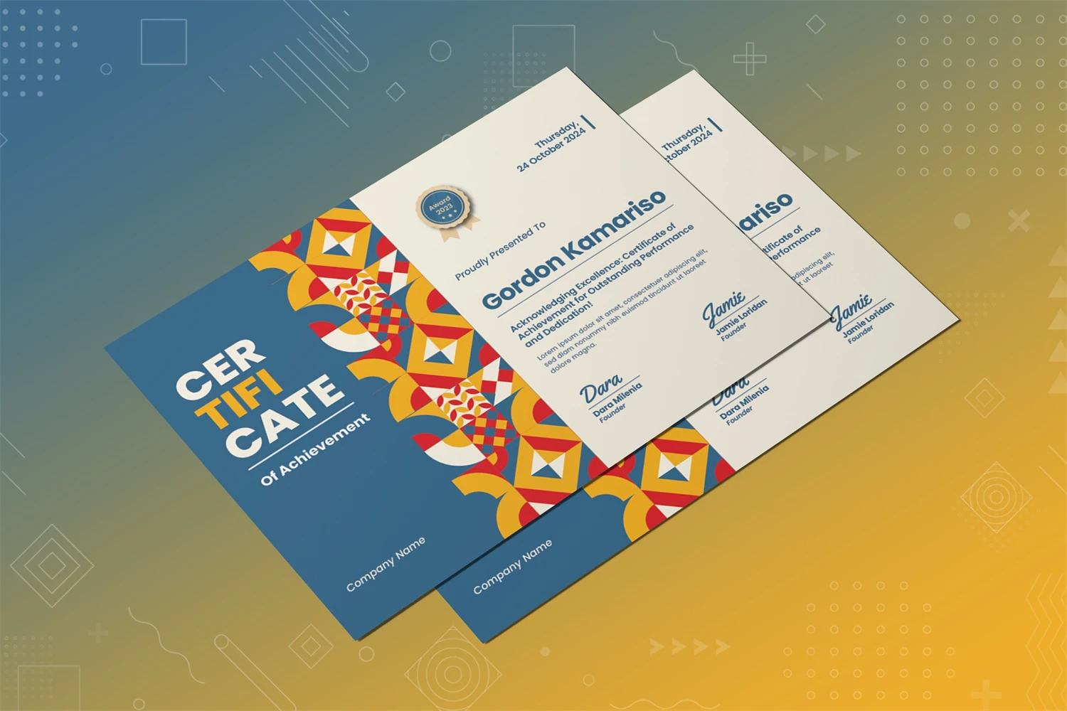 Make a lasting impression with this certificate template. We paint the feeling of achievement, so you can look back on milestones and victories and give thanks for your efforts.