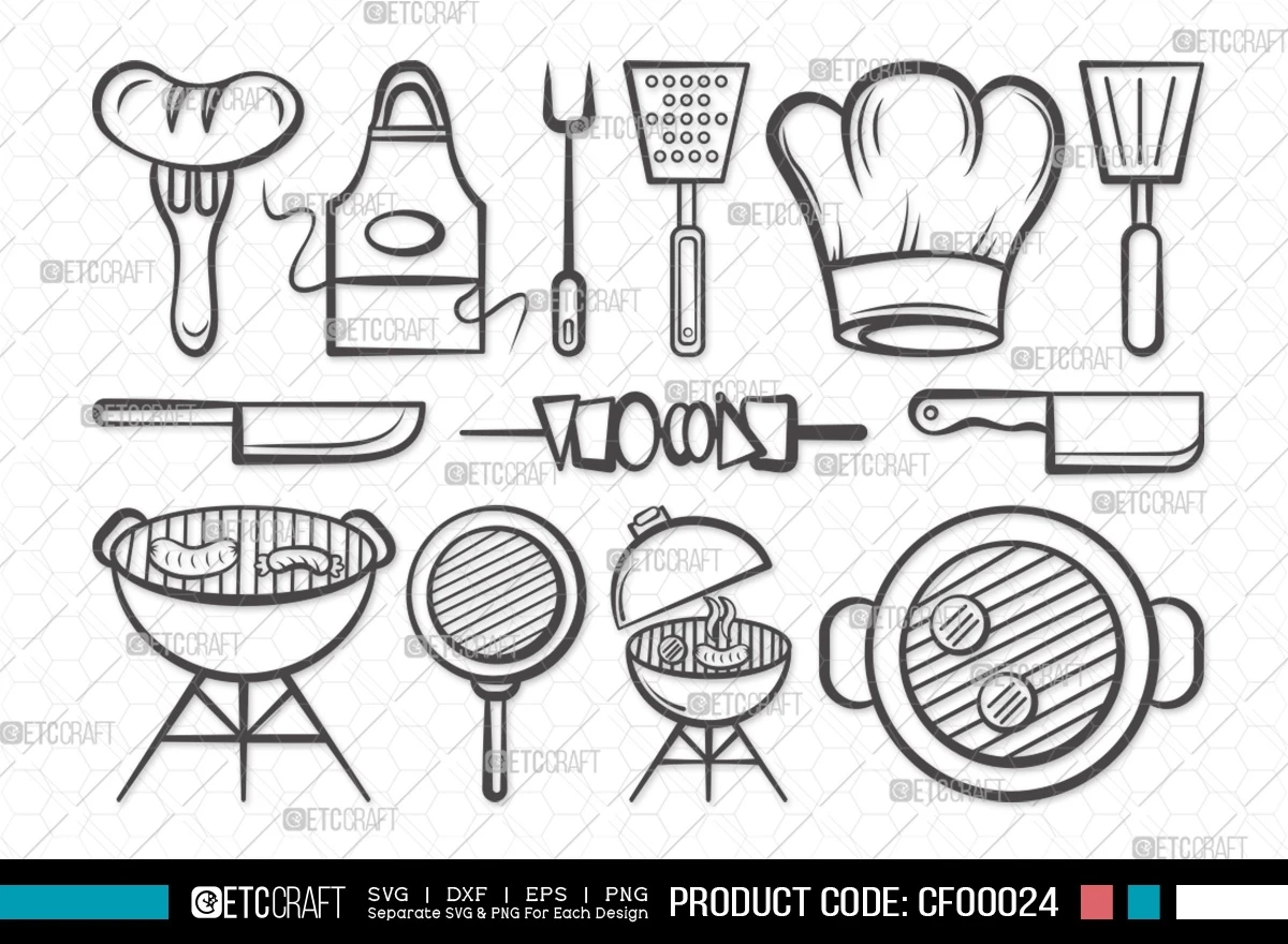 Introducing our sizzling BBQ Outline Grill Barbecue Grilling Kitchen SVG Cut File Bundle, curated to spark your creativity and infuse that grilling charm into your crafts! This versatile bundle of outlined designs is perfect for the BBQ aficionado in you.