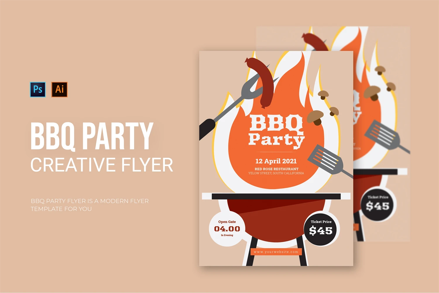 BBQ Party - Flyer. This Flyer template is designed for your company's business needs. very clean and elegant, and also easily edited and adjusted to your liking