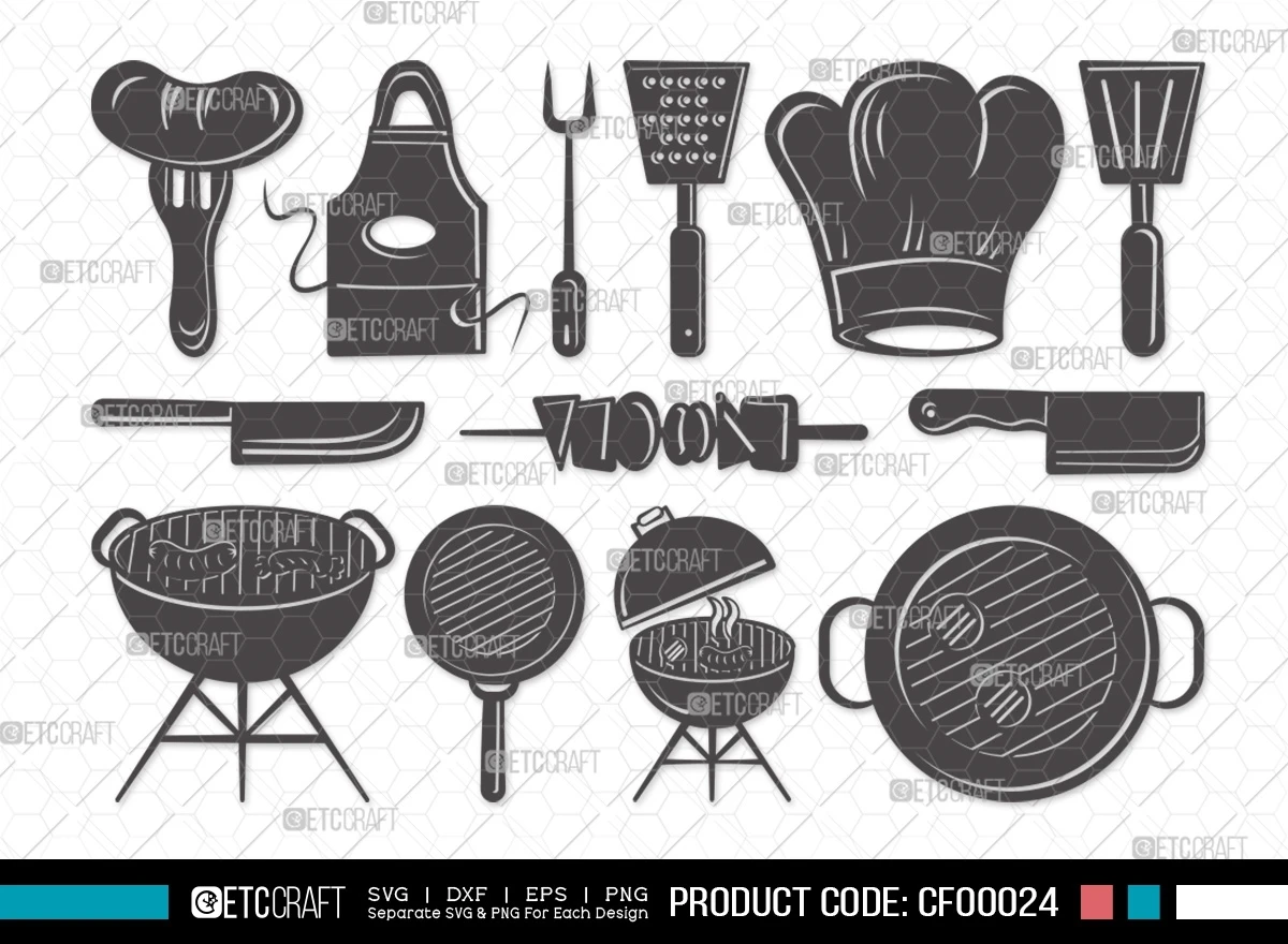 Introducing our sizzling BBQ Silhouette Grill Barbecue Grilling Kitchen SVG Cut File Bundle, meticulously crafted to bring the sizzle of the grill into your creative projects! This versatile bundle features sleek silhouettes that infuse the spirit of BBQ into your crafting endeavors.