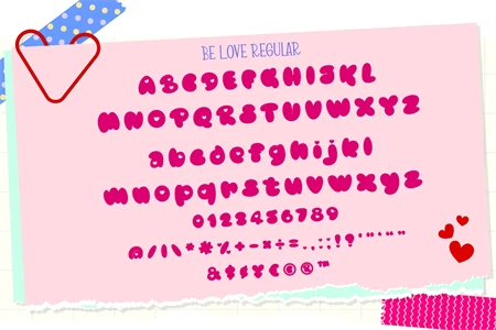 Be Love is a cool-looking and bubbly display font. It embodies playfulness and authenticity and is the perfect choice for a valentines project or street art fashion, T-Shirts, Sportswear, logos, and more!