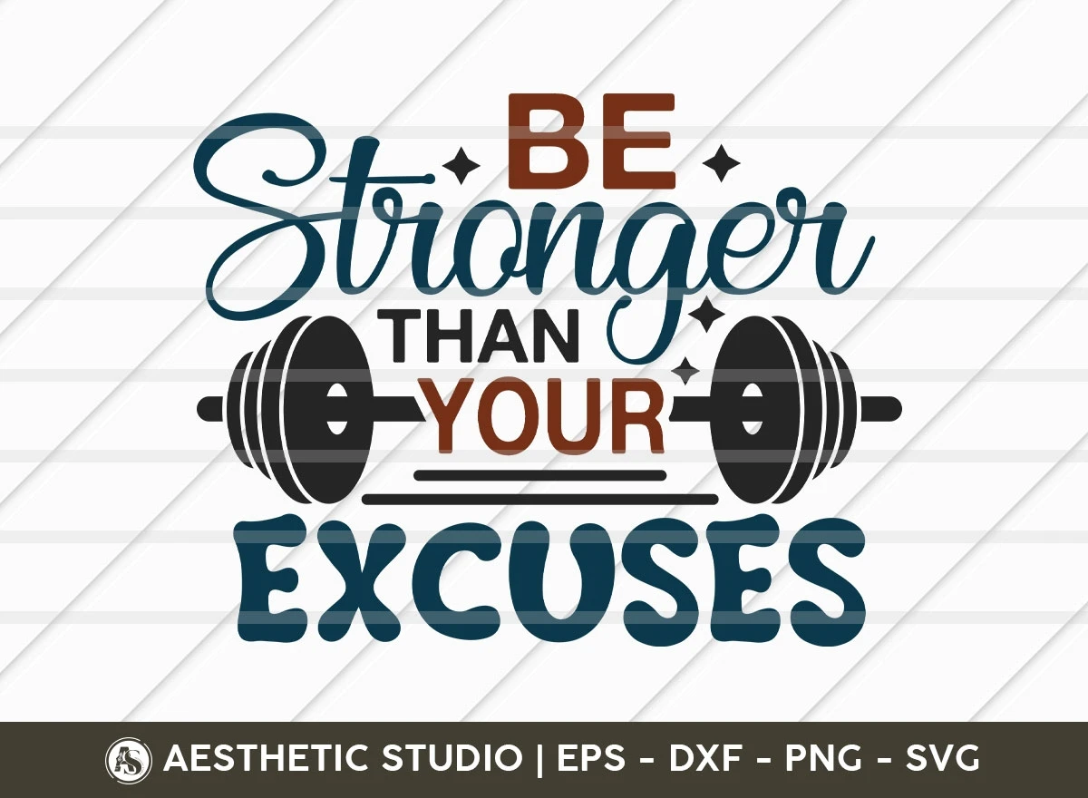 Unleash your inner motivation with our "Be Stronger Than Your Excuses" SVG design. This powerful and inspiring SVG file is perfect for creating gym apparel, workout gear, and accessories that will keep you or your clients focused on their fitness journey.